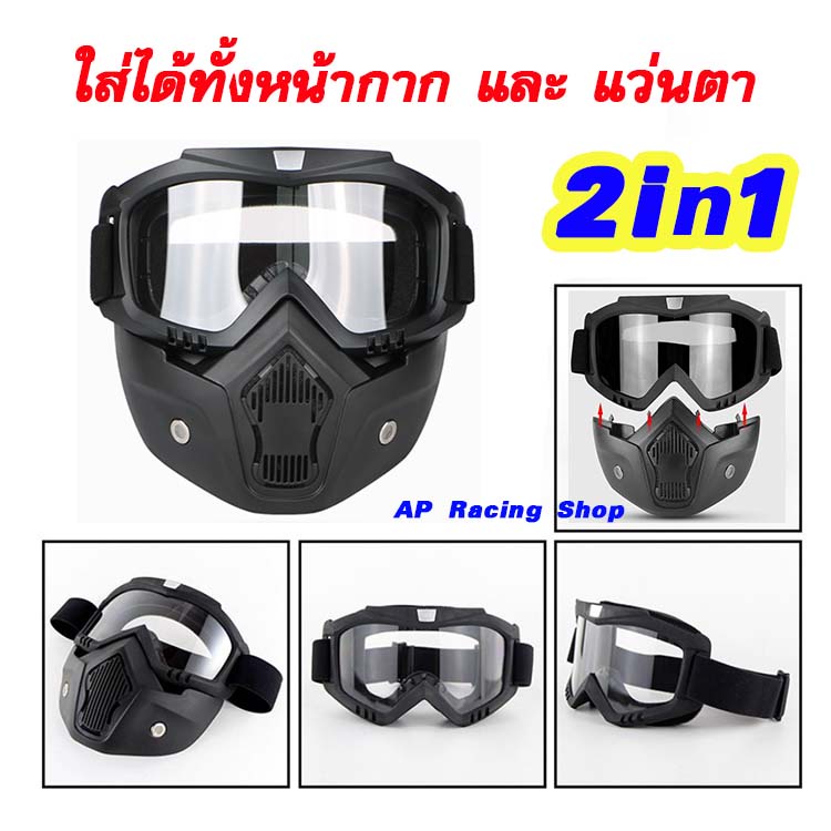🇹🇭พร้อมส่งด่วนจากไทย💯หน้ากากหมวกกันน็อค แว่นวิบาก หน้ากากพร้อมแว่น กันลม กันแดด หน้ากากกันลม ใส่ตัดหญ้า