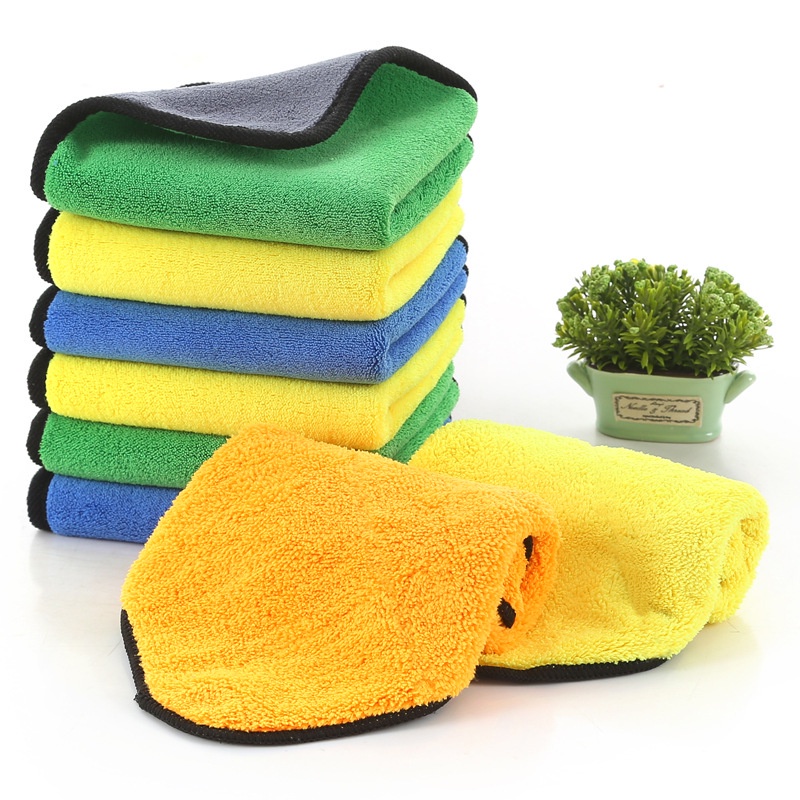 XSJ-07【400กรัม】 ขนาด 30x30 ซม. ผ้าเช็ดรถ ไมโครไฟเบอร์ 3D สำหรับทำความสะอาด กุ้นขอบดำ หนา นุ่ม เก็บฝุ่น ซับน้ำได้ดี