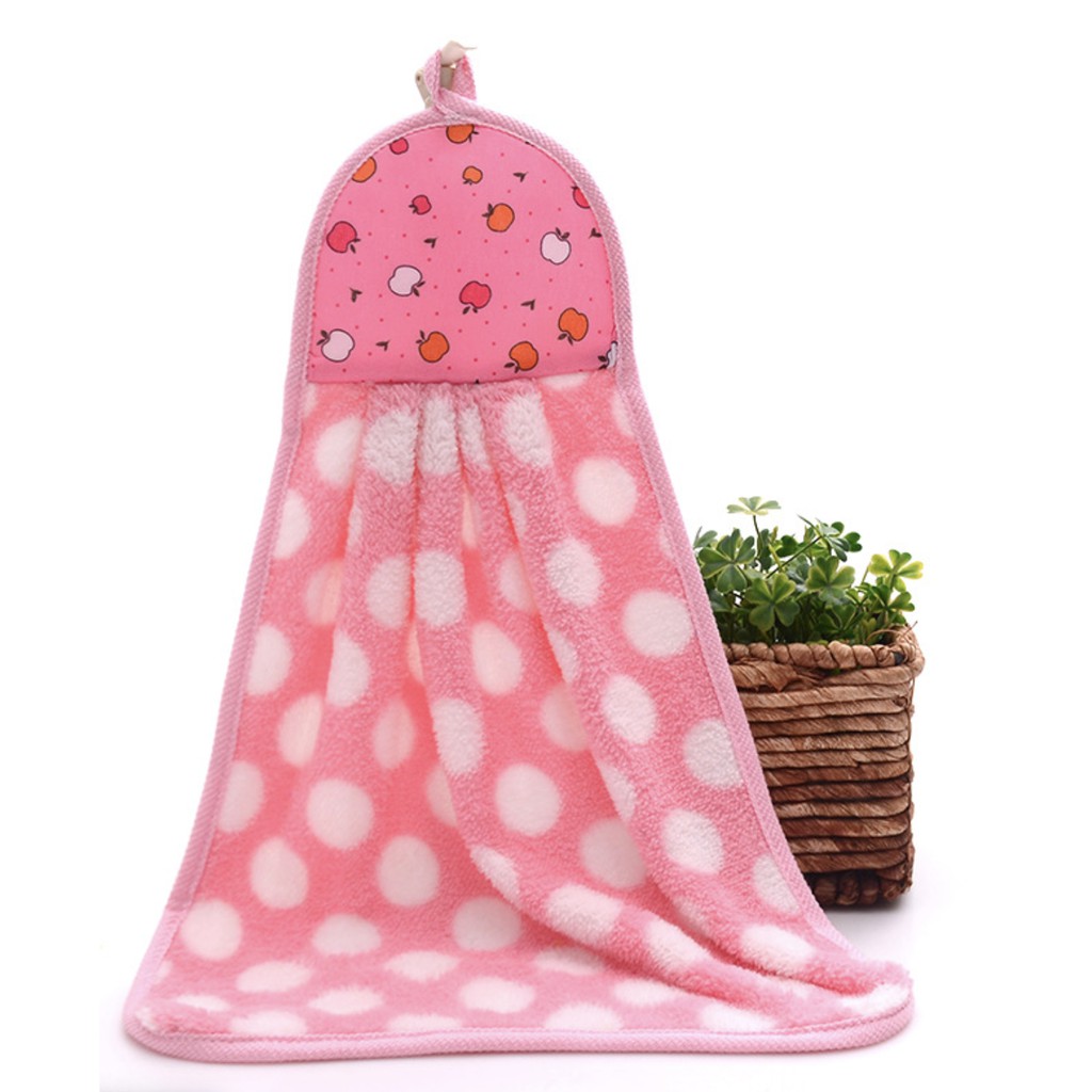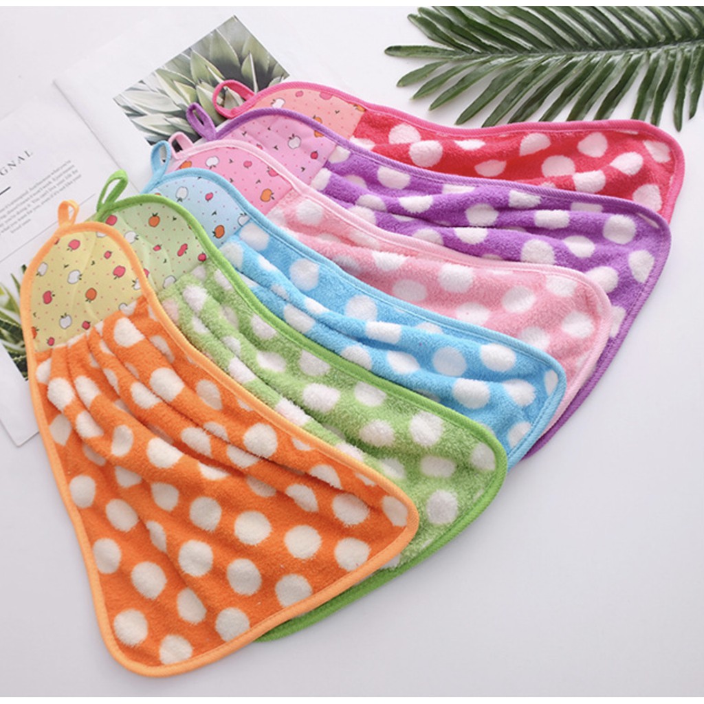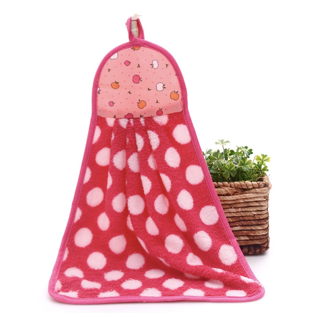 XSJ-01 【ลายจุด】ผ้าทำความสะอาด ผ้าเช็ดมือแบบแขวน ขนเป็ด ซับน้ำดี ขนาด 35x25 ซม