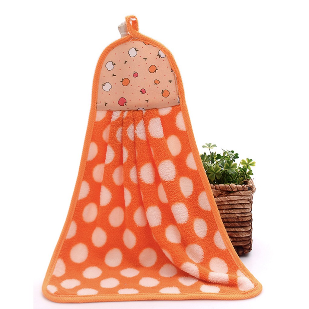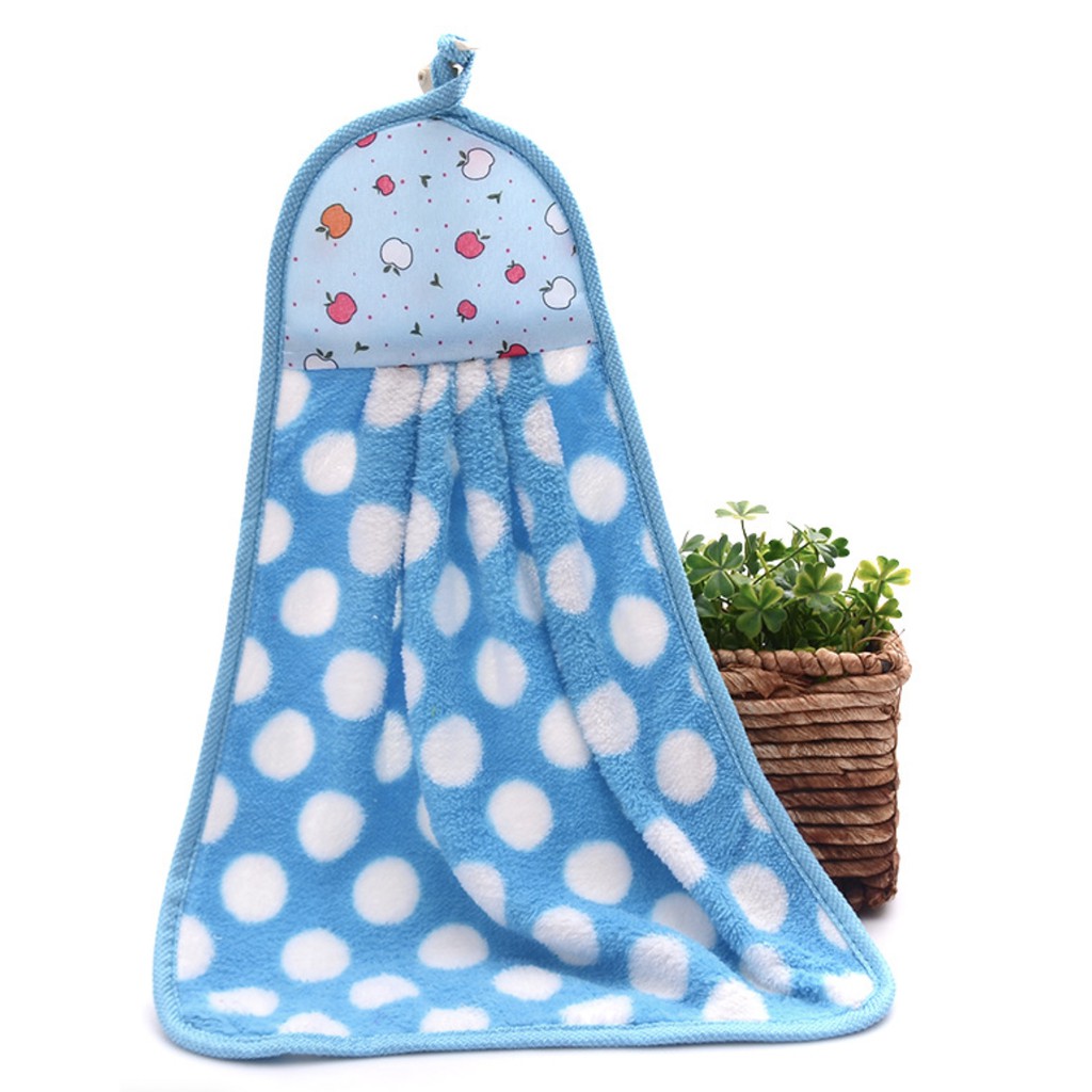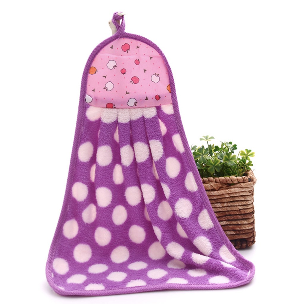 XSJ-01 【ลายจุด】ผ้าทำความสะอาด ผ้าเช็ดมือแบบแขวน ขนเป็ด ซับน้ำดี ขนาด 35x25 ซม