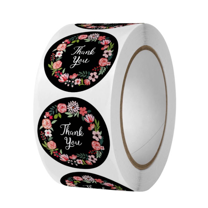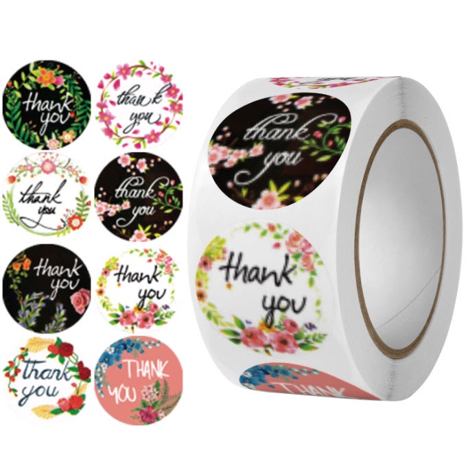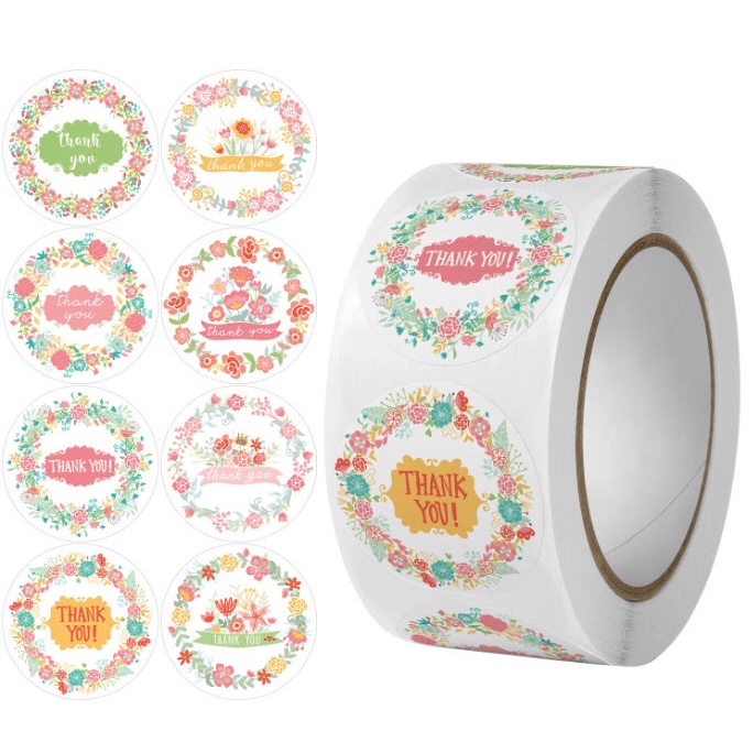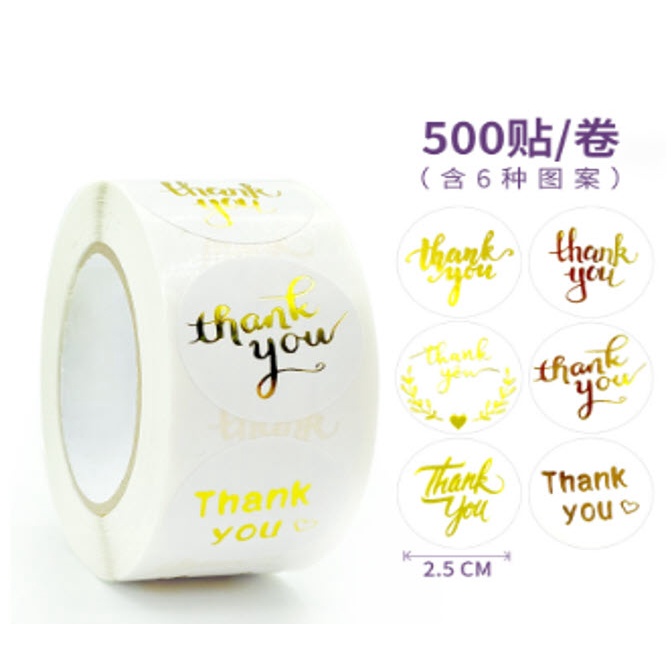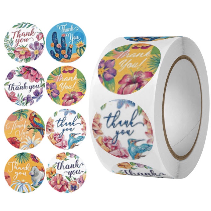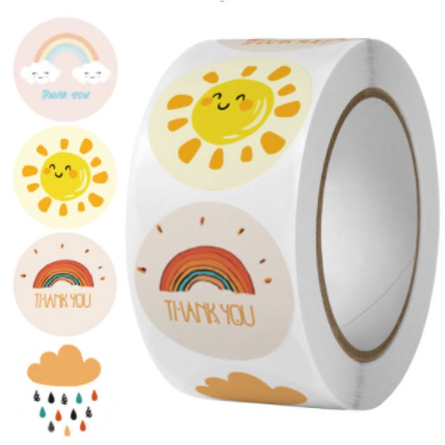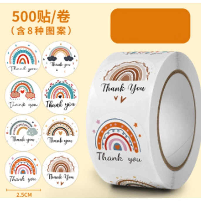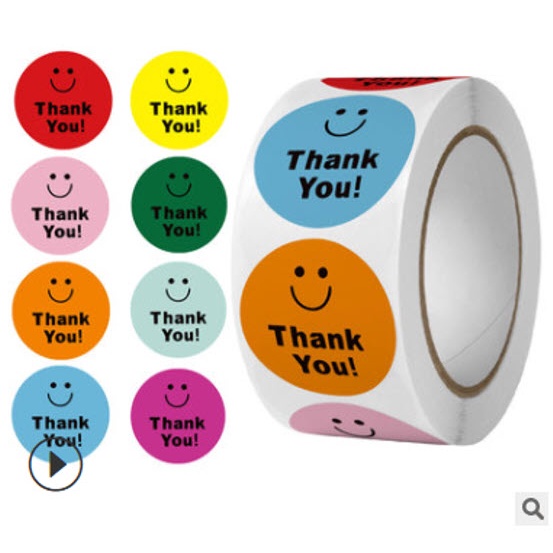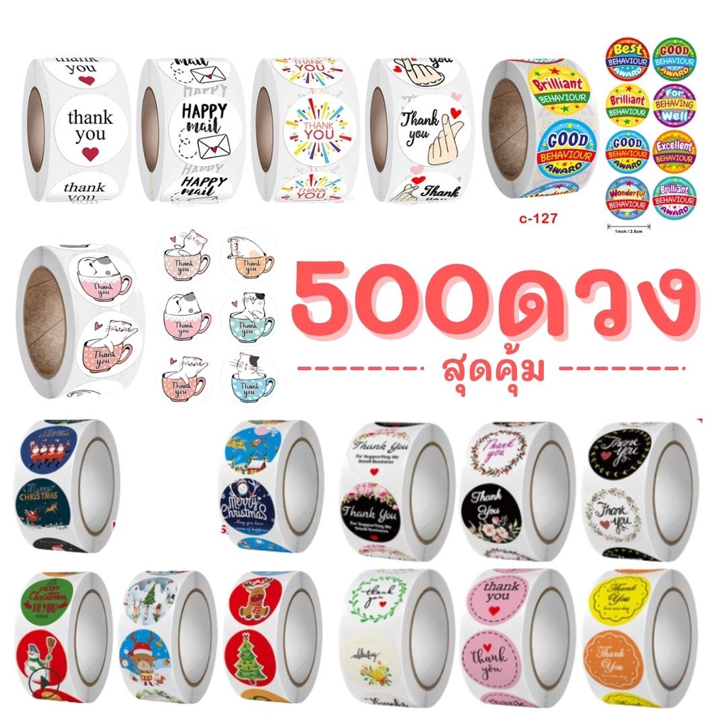 สติ๊กเกอร์ขอบคุณ 500ดวง/ม้วน thank you sticker คริสต์มาส รางวัลเด็กดี เทปตกแต่ง เทปสี สติ๊กเกอร์ตกแต่ง ของขวัญ ปัจฉิม