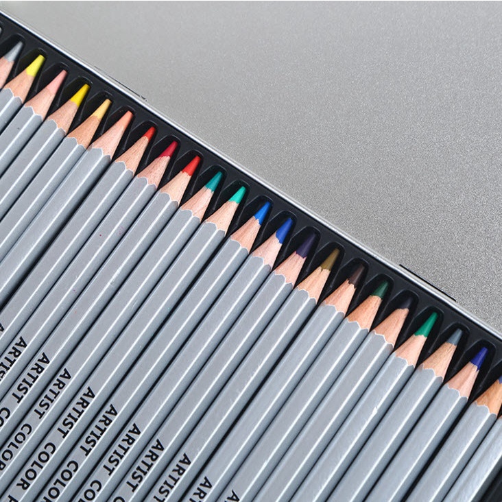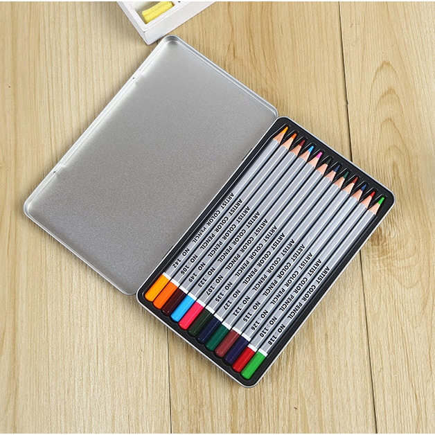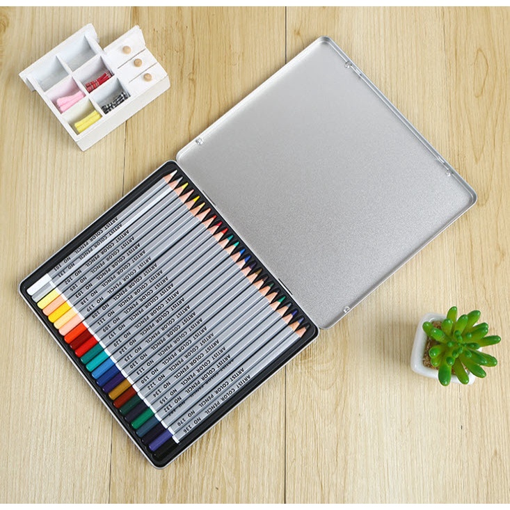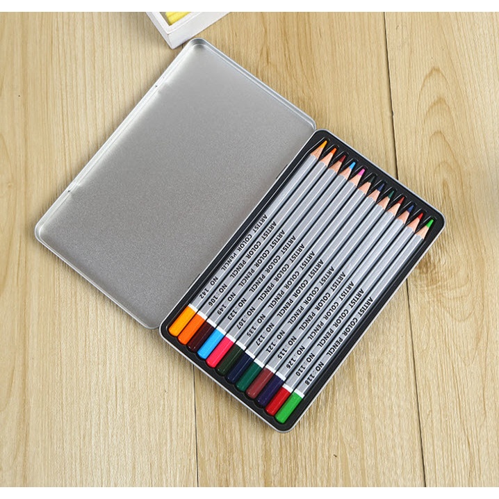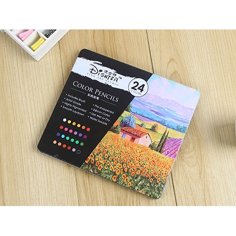 [รุ่นใหม่ #3002] ดินสอสี Fine Art Studio กล่องเหล็ก 12/24 สี เกรดพรีเมียม Dishter ชุดระบายสี สีไม้ ละลายน้ำได้