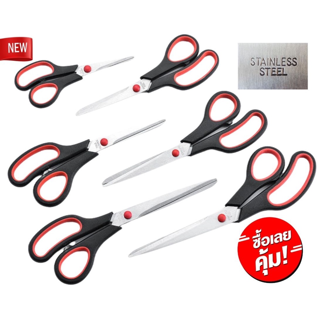 กรรไกรสแตนเลส สีดำ จับถนัดมือ หลายขนาด 7.5/8/8.5/9/10นิ้ว กรรไกร ตัดกระดาษ Stainless Steel กรรไกรอเนกประสงค์