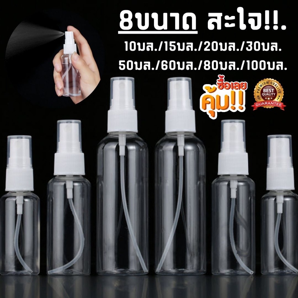 ขวดสเปรย์เปล่า ขวดสเปรย์พลาสติก สเปรย์ฉีด 8ขนาด 10ml.-100ml. ใส่ของเหลว น้ำ หอม พกพาได้ ฝาขาว