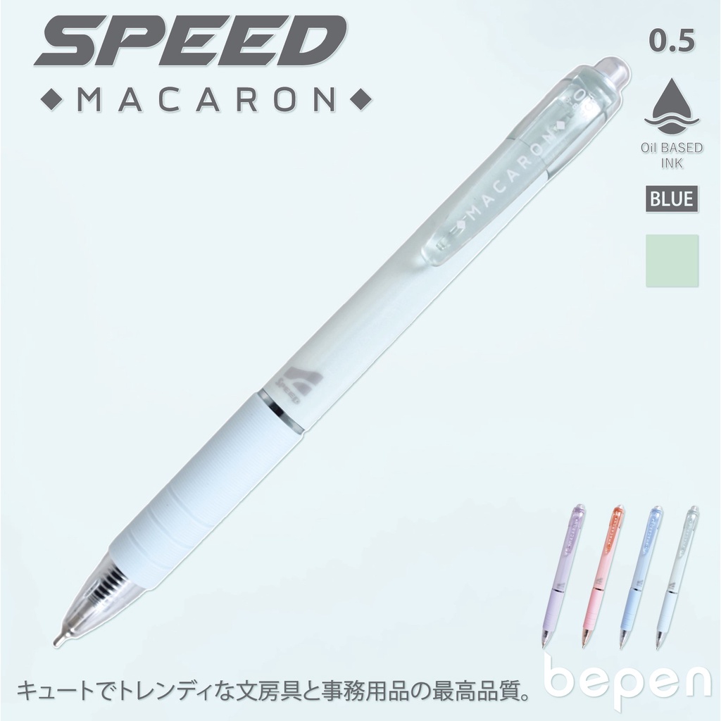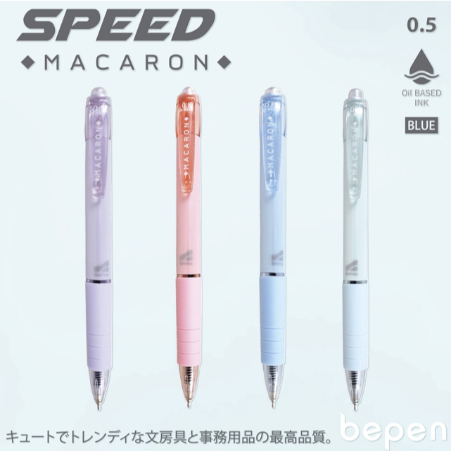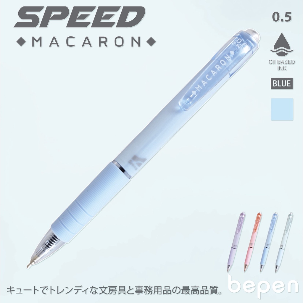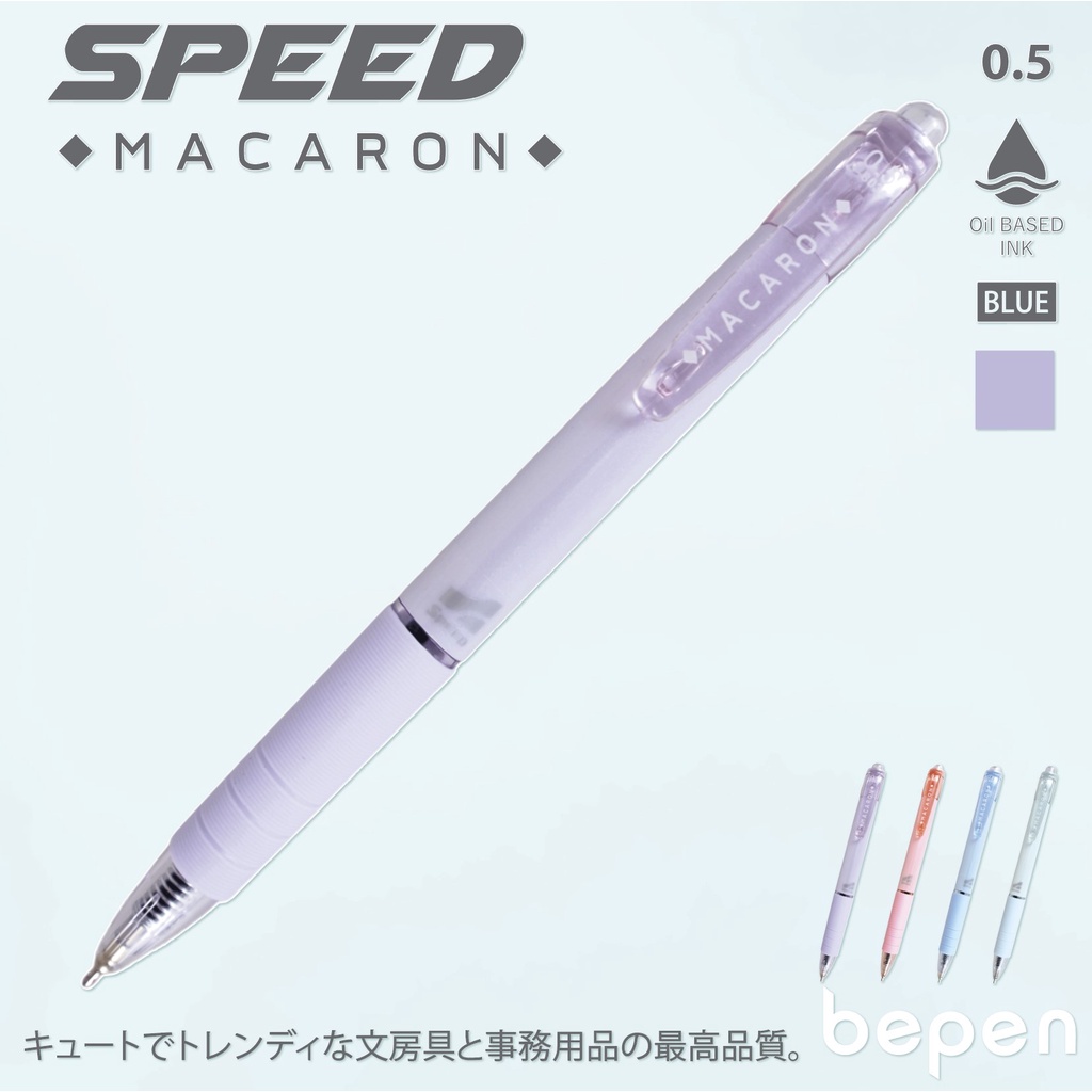 ปากกาลูกลื่น MACARON หมึกน้ำมัน เปิดไว้หมึกไม่แห้ง หมึกน้ำเงิน B803-A แบบกด 0.5มม. มี4สี นำเข้าจากญี่ปุ่น