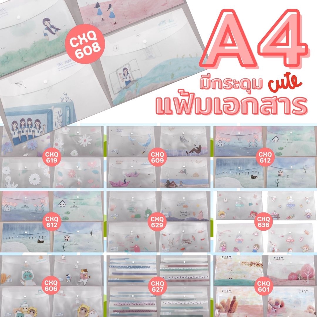 แฟ้มเอกสาร A4 พิมพ์ลาย มีกระดุม S0164 ลายการ์ตูน แฟ้ม คุณภาพอย่างดี น่ารักมากๆ