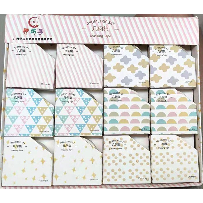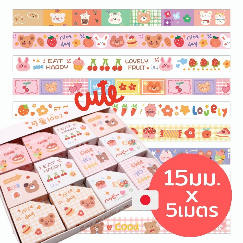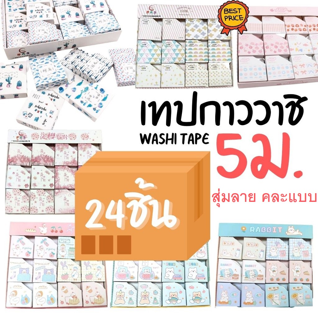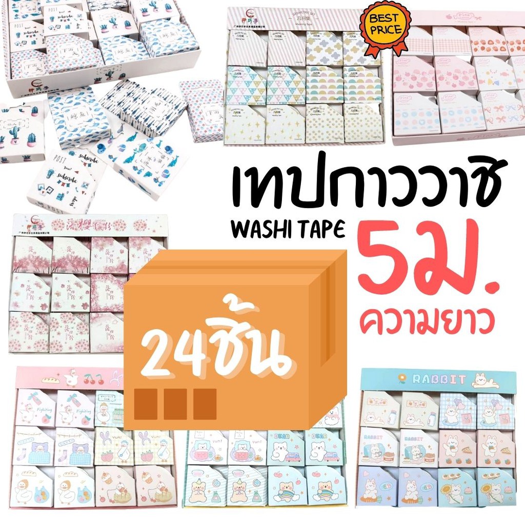 [ขายยกกล่อง 24ชิ้น] เทปกาว วาชิเทป WASHI TAPE ยาว5เมตร เทปตกแต่ง ลวดลายต่างๆ หน้ากว้าง 15มม. พร้อมกล่อง