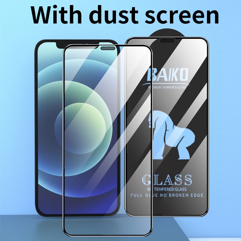 ฟิล์มกระจกเต็มจอ [มีตะแกรงกันฝุ่น] For iPhone Air,17 Pro,16e,16,15,14 Pro Max,14 Plus,13 Mini/12 Pro Max/12 Mini/11