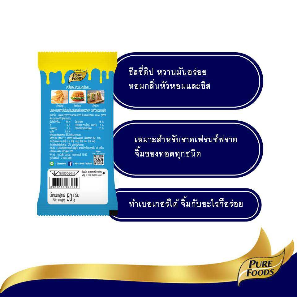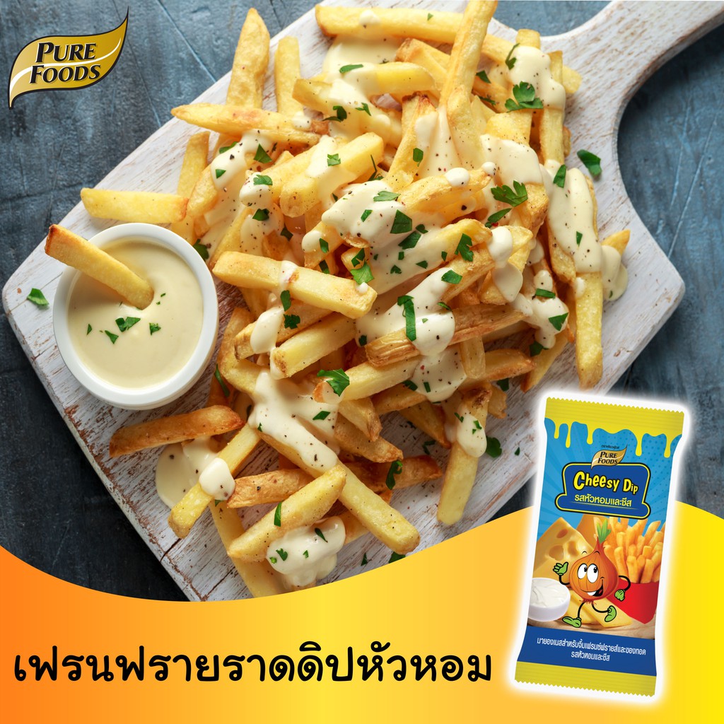 เพียวฟู้ดส์ ชีสดิป หัวหอมข นาด 50 กรัม รสชาติอร่อย เข้ากับอาหารทอดได้หลากหลายเหมาะสำหรับจิ้มเฟรนฟราย