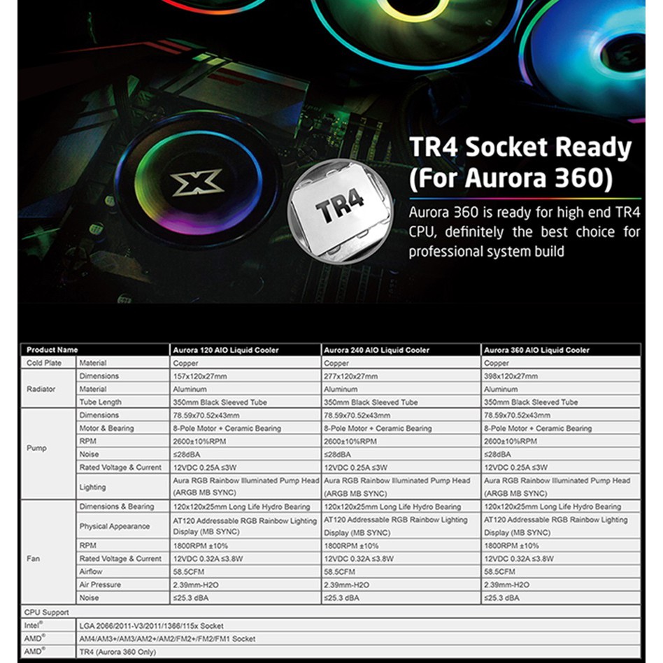 ชุดน้ำ 3ตอน AURORA 360 XIGMATEK CPU Liquid Cooler 2Years Warranty gen10 11 12 ryzen AM4 TR4 ( Support LGA1700 1200 )