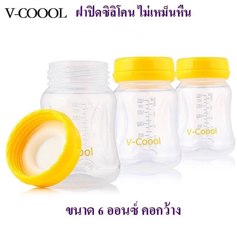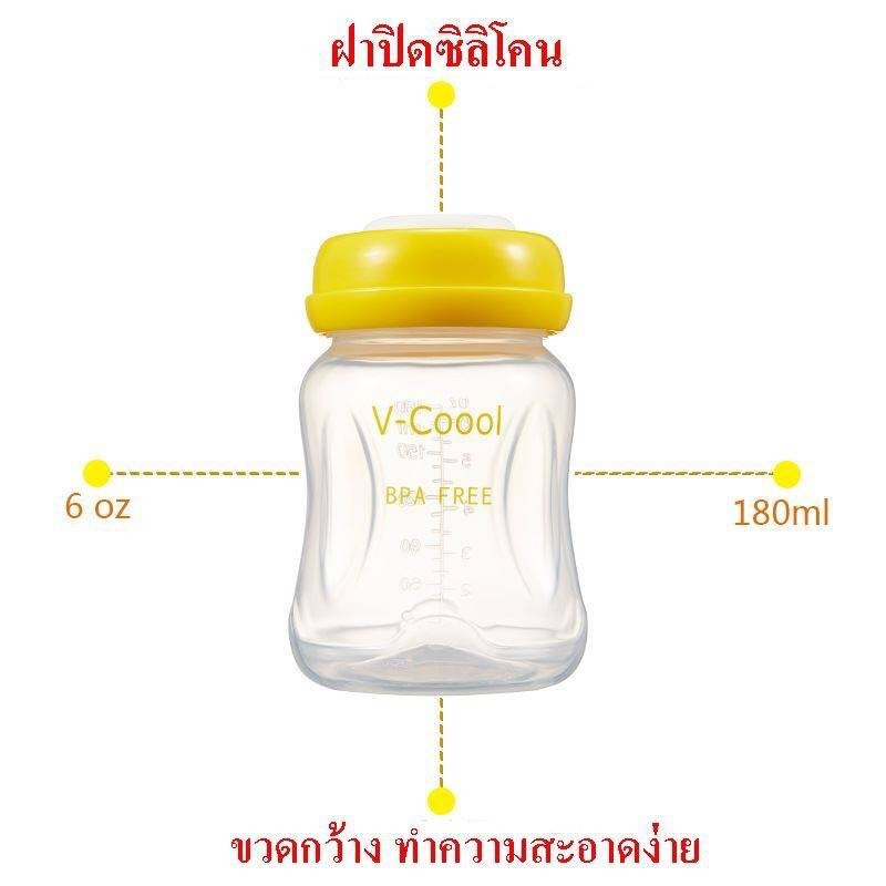 ขวดเก็บน้ำนม V coool BPA Free ขนาด 6 ออนซ์ ฝาสุญญากาศ นมไม่เหม็นหืน (P)