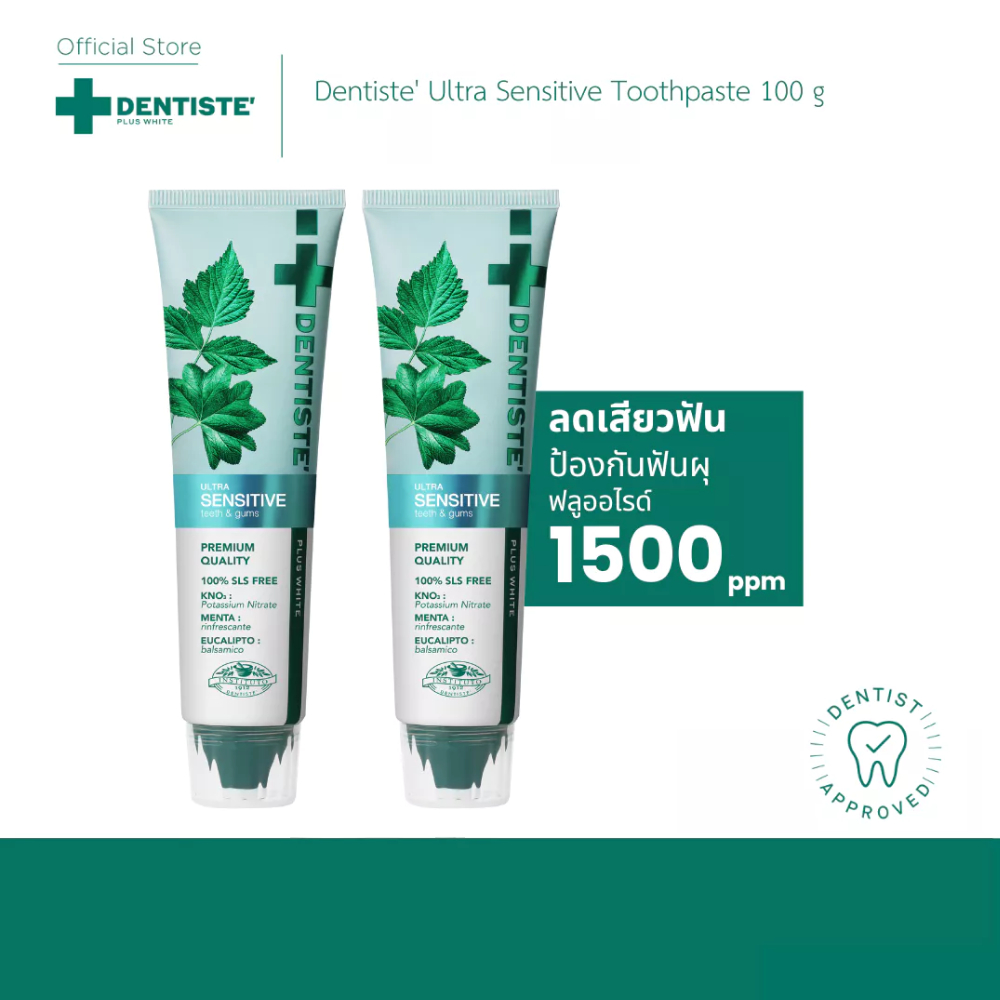 [แพ็ค 2] Dentiste' Ultra Sensitive 100g. ยาสีฟัน 1500PPM ลดเสียวฟัน อ่อนโยน เดนทิสเต้