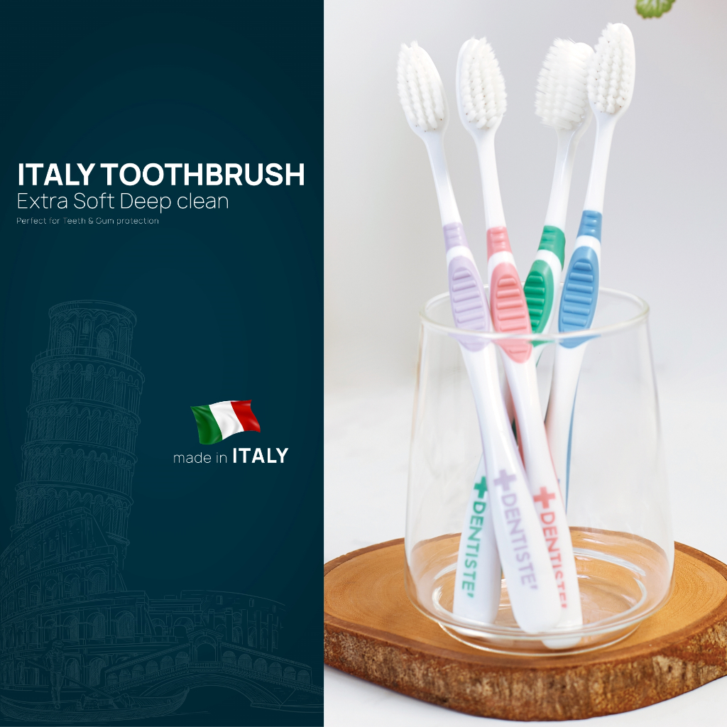 [แพ็ค 3] Dentiste' Italy Tooth Brush Big-Blis แปรงสีฟันอิตาลี หัวแปรงใหญ่ จับถนัดมือ 3 สี Blue,Green,Purple