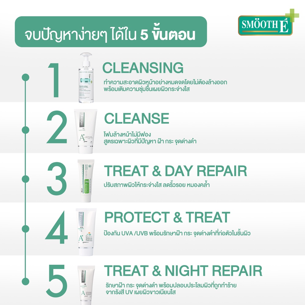 Smooth E เซ็ตรักษาฝ้า 5 Steps Anti-Melasma Solution Complete Set ทำความสะอาดพร้อมบำรุงทั้งกลางวันและกลางคืน