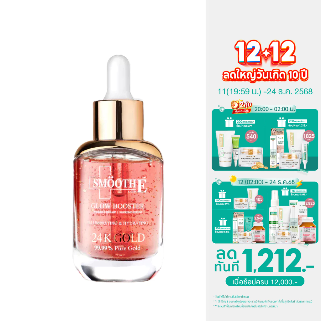 [สินค้าขายดี] Smooth E Gold 24k Glow Booster Anti-Aging Serum 30ml ลดเลือนริ้วรอยร่องลึก 10 ปี ลดฝ้าแดดสะสมใน 2 สัปดาห์
