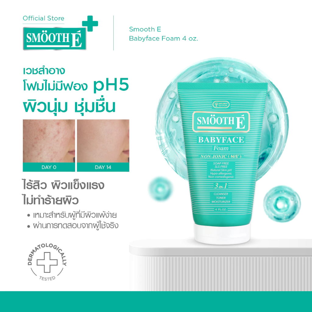 [สินค้าขายดี] Smooth E Babyface Foam สมูทอี เบบี้เฟส โฟม pH5 ลดสิวผิวแข็งแรง สำหรับคนผิวมัน เป็นสิว 2 / 4 / 8 Oz.