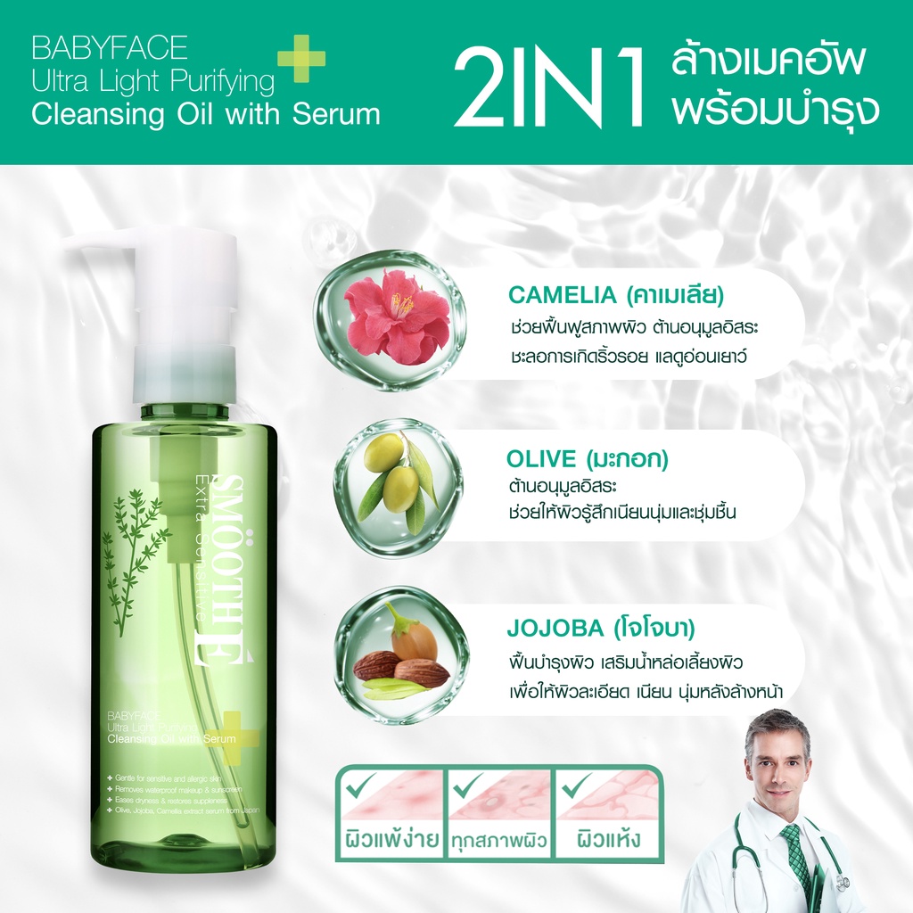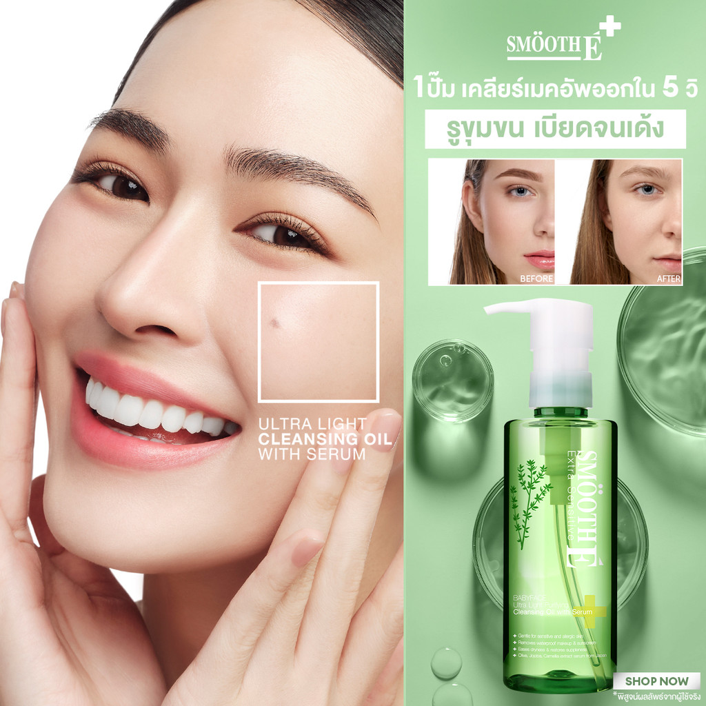 Smooth E เซรั่มล้างเครื่องสำอาง Ultra Light Purifying Cleansing Oil สำหรับผิวแห้ง 100ml, 200ml