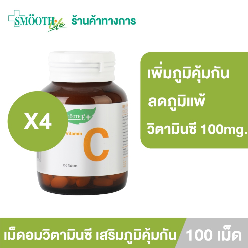 [แพ็ค 4] Smooth Life เม็ดอมวิตามินซี เสริมภูมิคุ้มกัน Vitamin C ลดอาการภูมิแพ้ 100mg. หวานน้อย ทานได้ทั้งเด็กเเละผู้ใหญ่