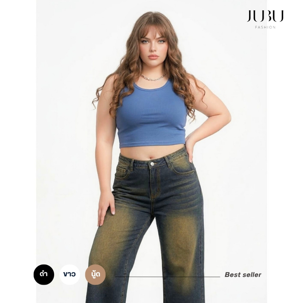 Liza Tank Crop Top(ไม่มีฟองน้ำ)เสื้อกล ้าม เสื้อสาวอวบ ผ้าร่อง หน้าอก35-48 นิ้ว พร้อมส่ง#498