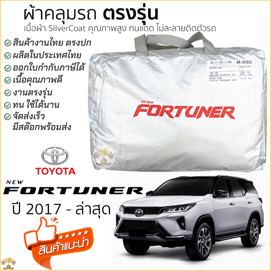 (RYF93 ลด25% ) ผ้าคลุมรถ All New Fortuner (2015 ถึงปัจจุบัน) ตรงรุ่นเนื้อผ้า Silver Coat 190C ทนแดด ไม่ละลาย