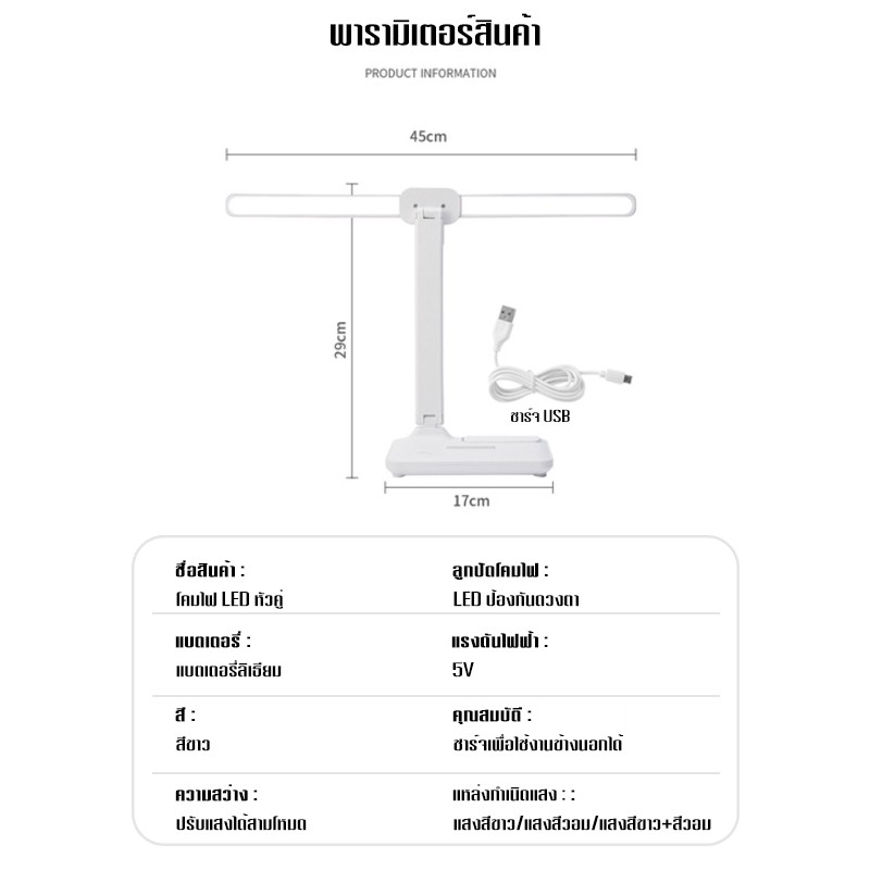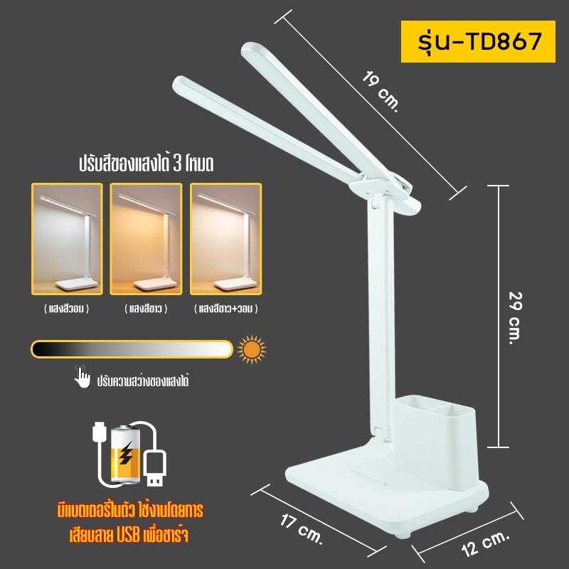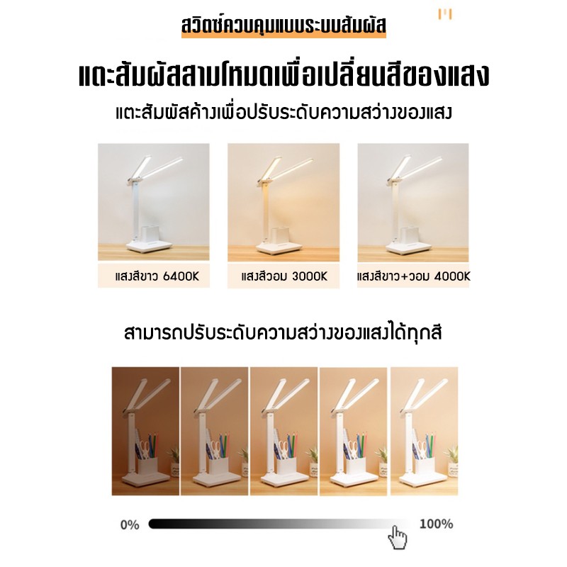โคมไฟอ่านหนังสือ ไฟ3สี LED lamp เกรดA ความสว่างสองเท่า รุ่นสัมผัส ปรับได้3ระดับ โต๊ะทำงานโคม โคมไฟหัวเตียง