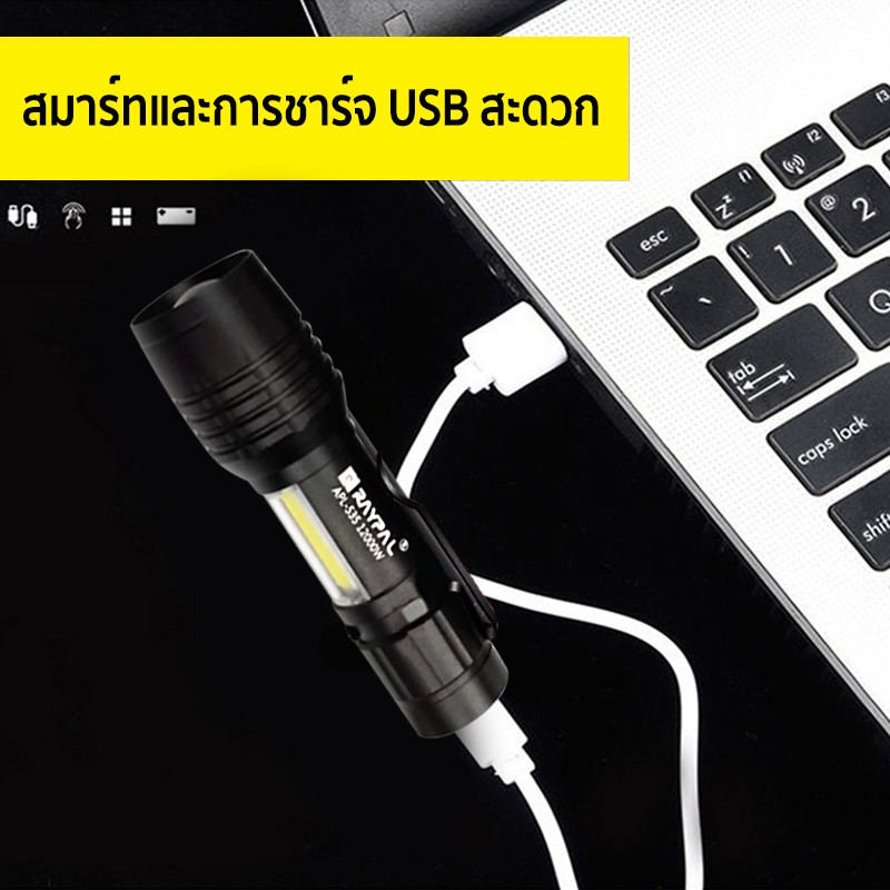 ไฟฉายแรงสูงซูม 4เท่า ปรับโหมดได้ 3แบบ ไฟฉายUSBชาร์จไฟ