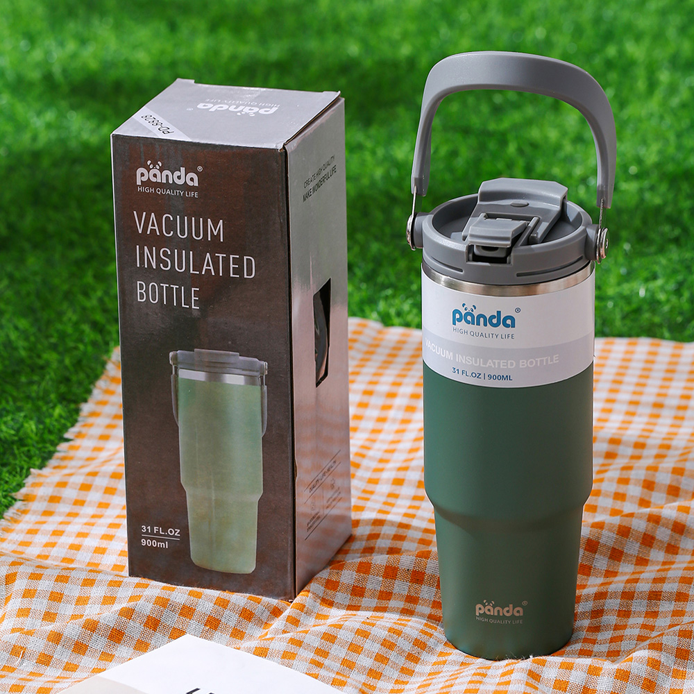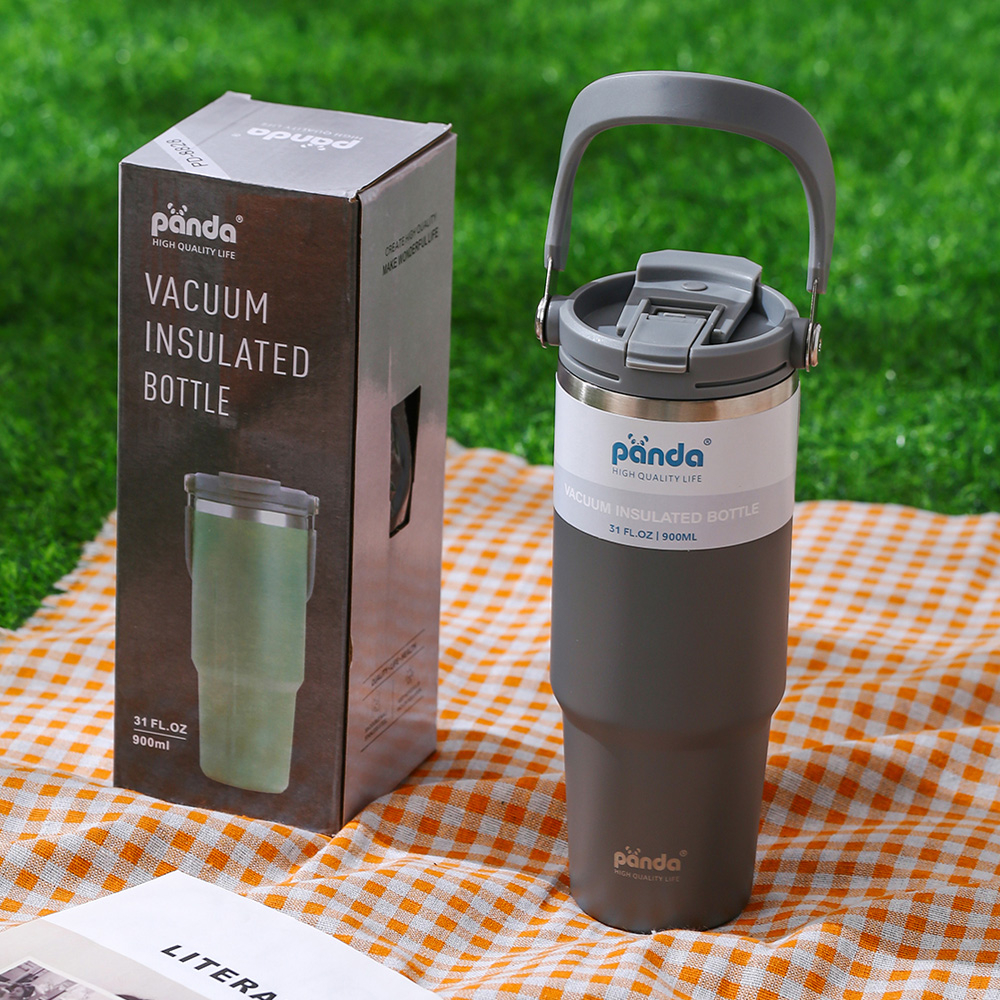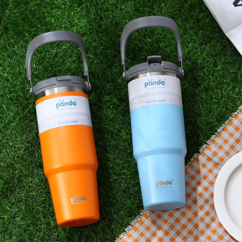 PANDA แก้วเก็บความเย็น ฝา2หัว 900ML 30oz รุ่นมีหูหิ้วมีหลอด 304เก็บความร้อน สแตนเลส พร้อมหลอด ของแท้