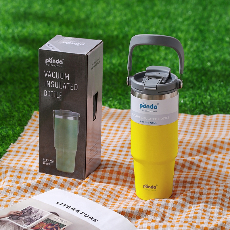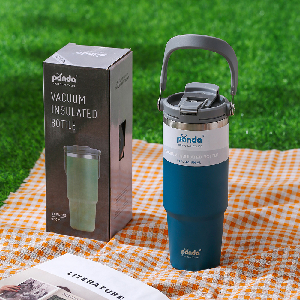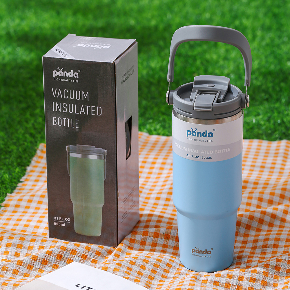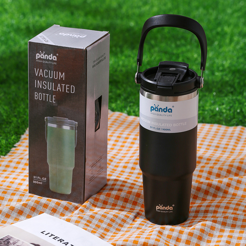 PANDA แก้วเก็บความเย็น ฝา2หัว 900ML 30oz รุ่นมีหูหิ้วมีหลอด 304เก็บความร้อน สแตนเลส พร้อมหลอด ของแท้