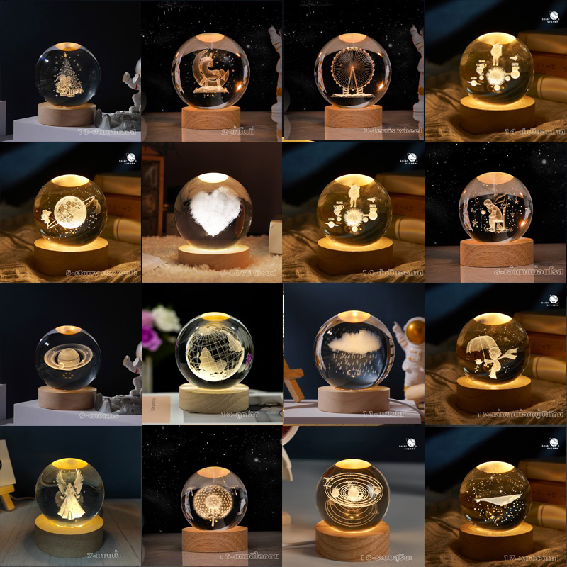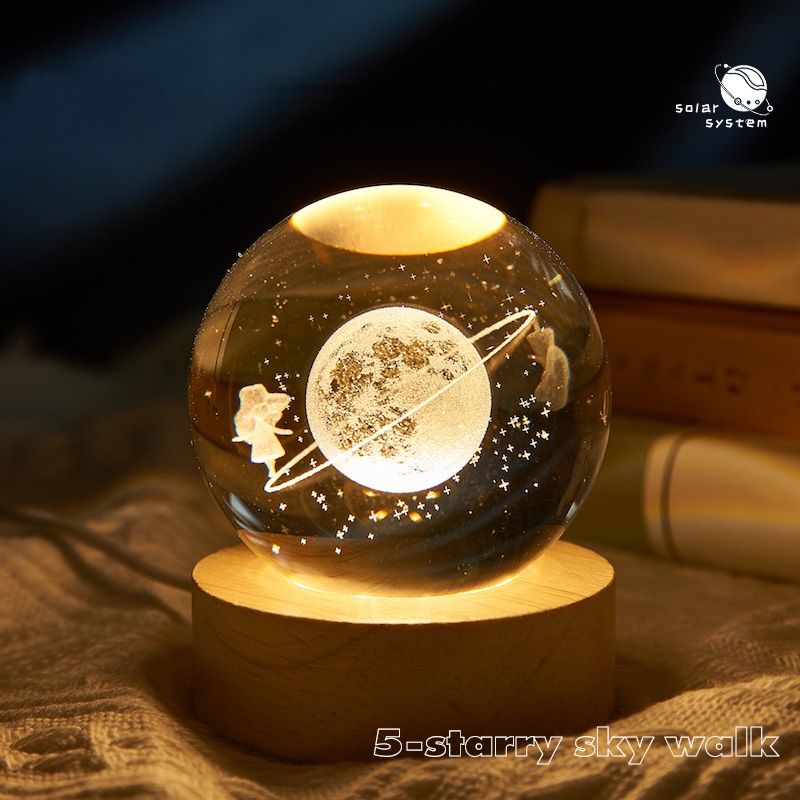 โคมไฟลูกแก้ว 3D LED USB ตั้งโต๊ะ คริสตัล กาแลคซี่ ไฟดาว ของขวัญวันเกิด โคมไฟหัวเตียง ไฟแต่งห้องห้องนอน แจกปีใหม่ 6cm