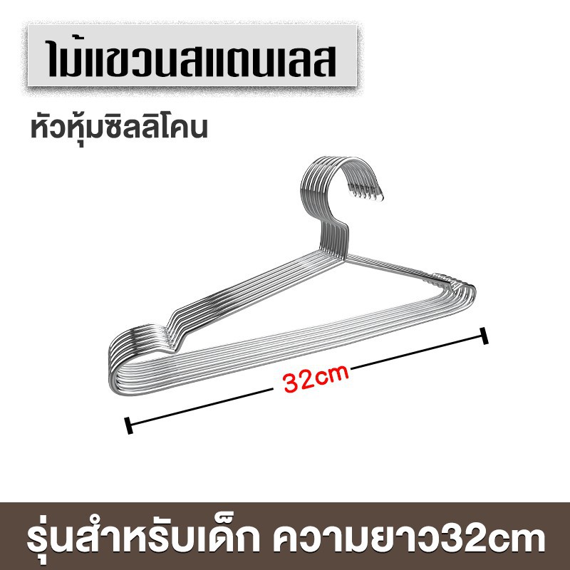 ไม้แขวนเสื้อสแตนเลส 304แท้ ไม้แขวนเสื้อ หนา3.2mm แพ็ค10ชิ้น ไม้แขวนผ้า ไม้แขวน แข็งแรง ไม้แขวนเหล็ก No.C011045