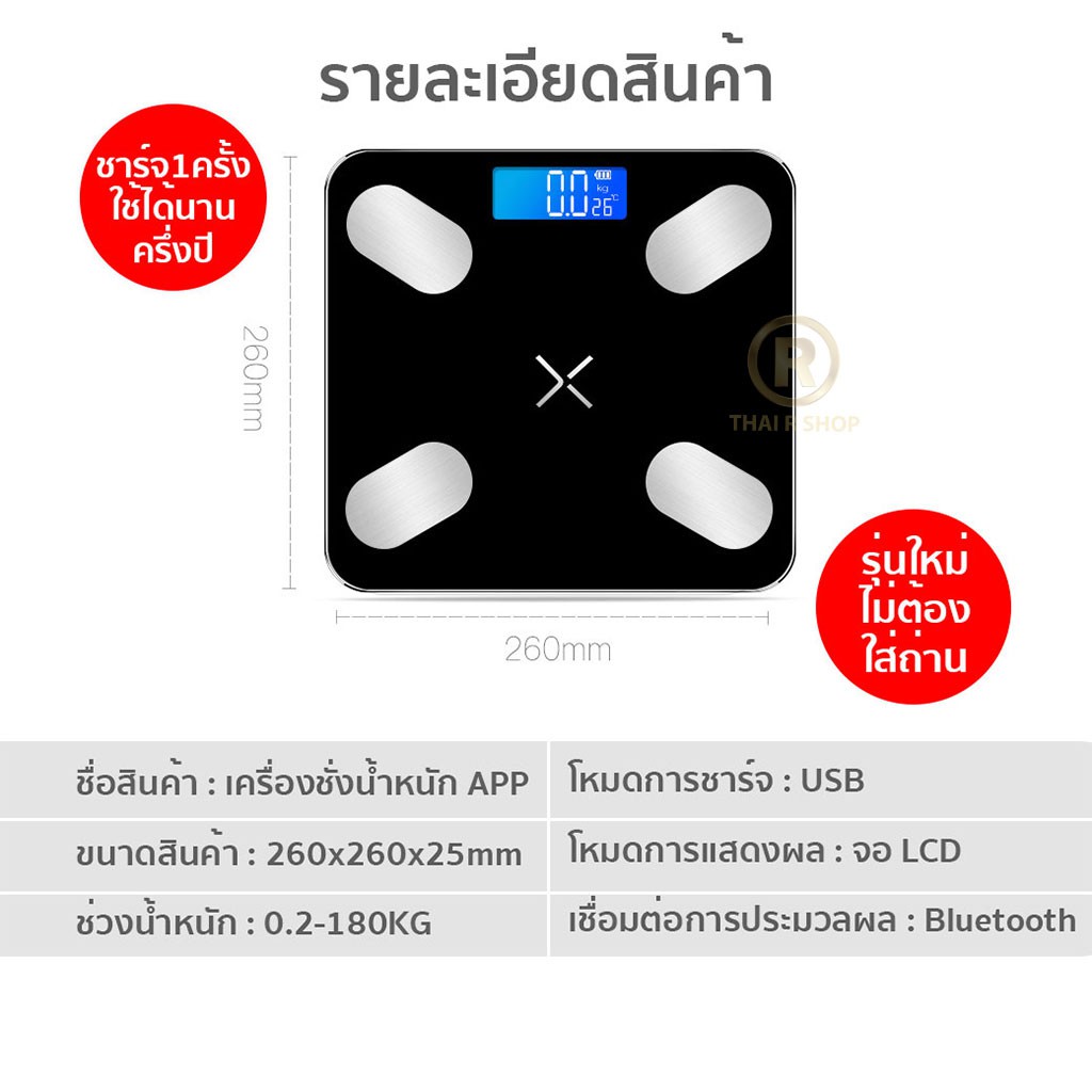 เครื่อง ชั่งน้ำหนักดิจิตอล อัจฉริยะ หน้าจอLCD 180 กก. วัดไขมัน เครื่องชั่งดิจิตอล เครื่องชั่ง ตาชั่งดิจิดอล No.2036