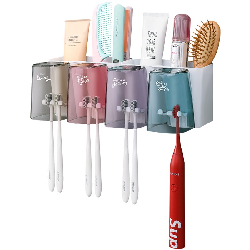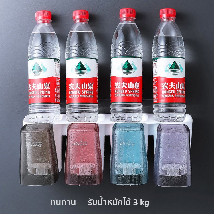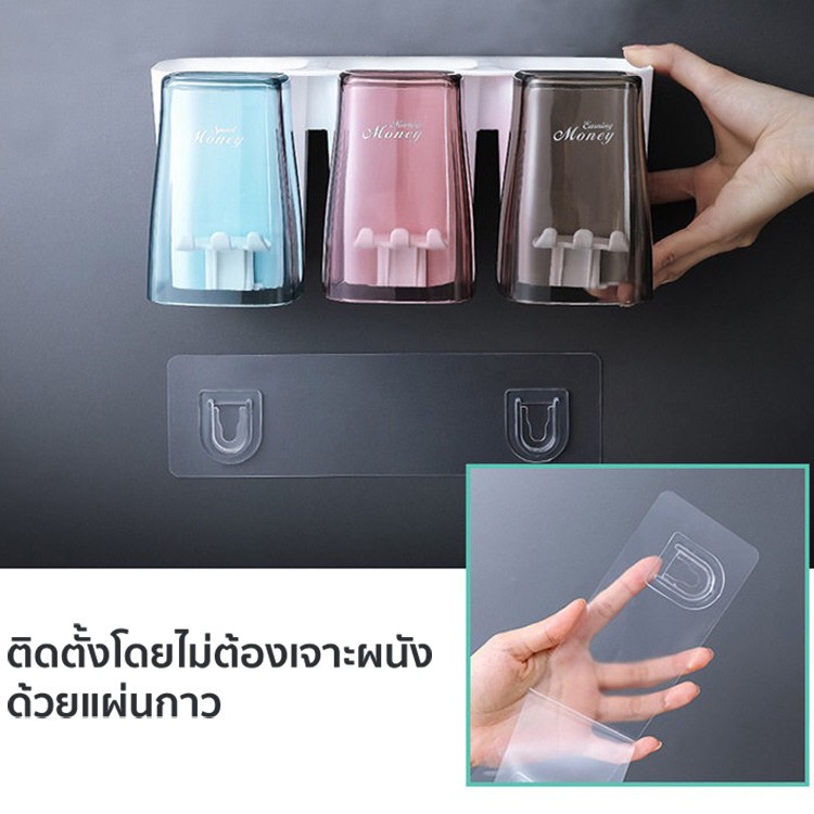 ชั้นวางของ+แก้ว+ที่แขวนแปรง ที่ใส่แปรงสีฟัน ที่เก็บของในห้องน้ำ