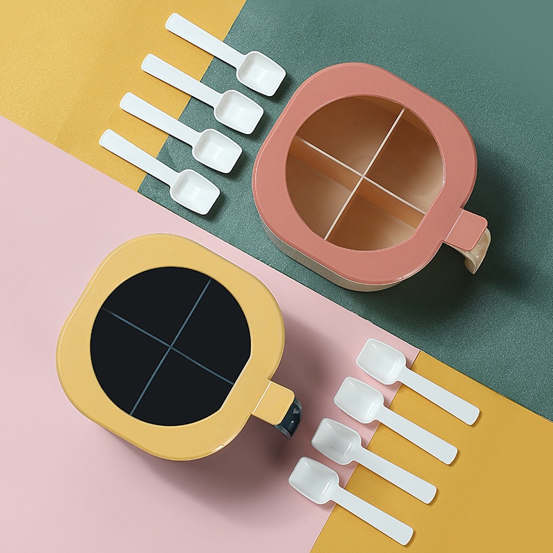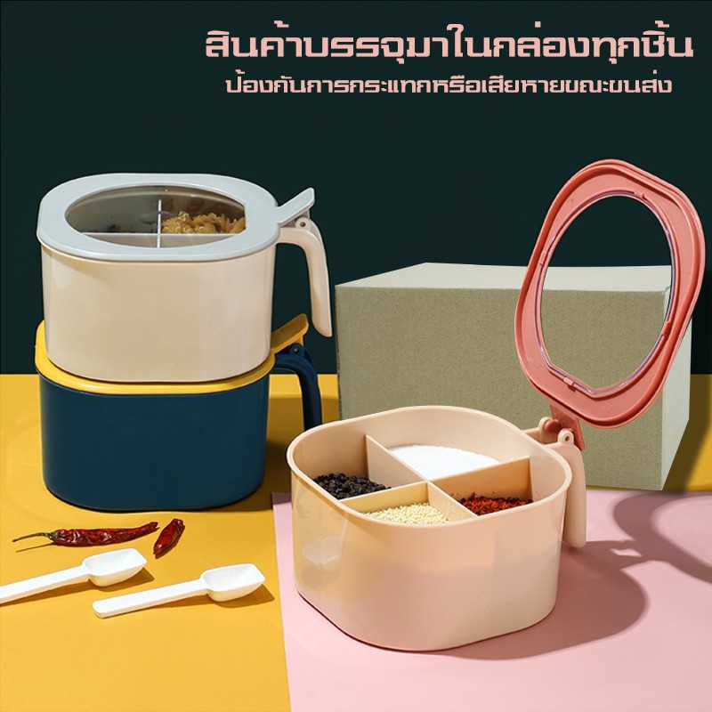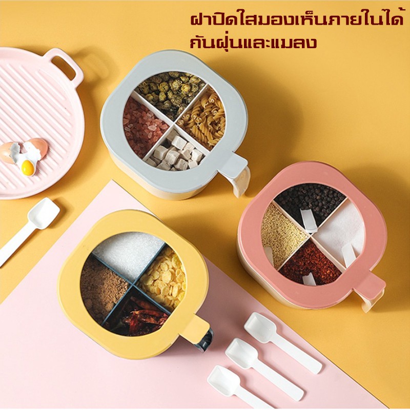 กระปุ กใส่เครื่องปรุง ที่ใส่เครื่องปรุงในครัว กล่องใส่4 ช่อง พร้อมช้อนตัก ฝาปิดแน่น (จัดส่งพร้อมกล่อง)
