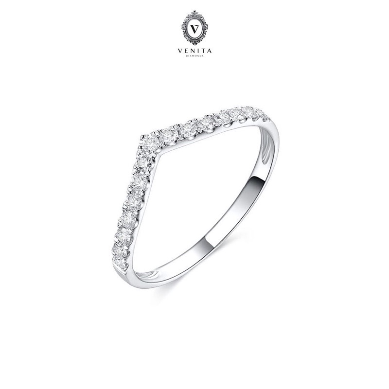 แหวนเพชรแท้ ทรงตัว V ตัวเรือนทองแท้ 18K