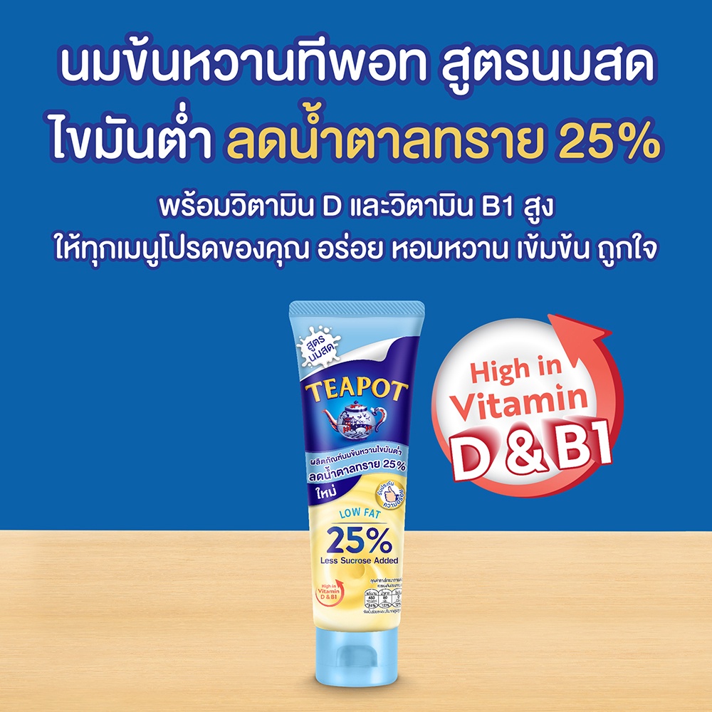 ผลิตภัณฑ์นมข้นหวานไขมันต่ำ ลดน้ำตาลทราย 25% แบบหลอดบีบ ตราทีพอท 170 กรัม (แพ็ค 8)