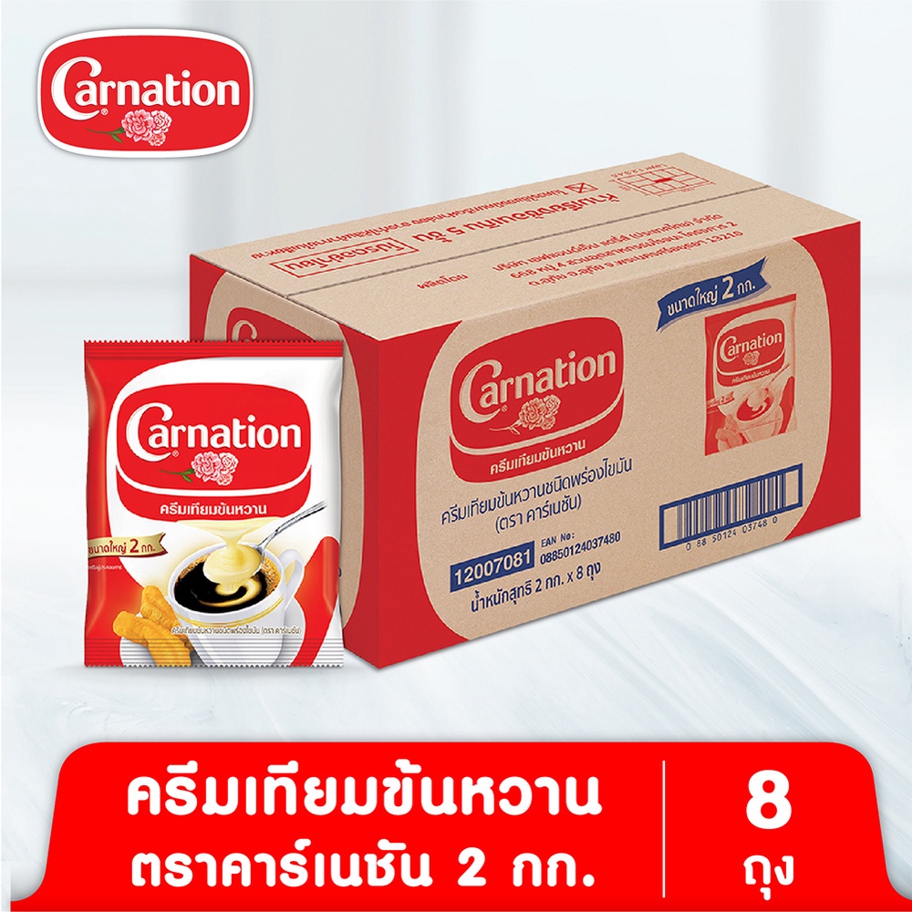 ครีมเทียมข้นหวานชนิดพร่องไขมัน ตรา คาร์เนชัน 2 กก. (8 ถุง)