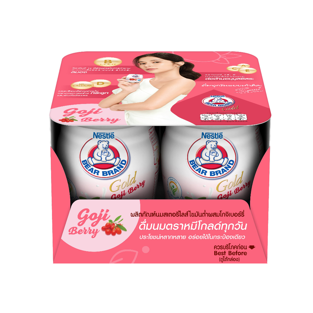 นมสเตอริไลส์ไขมันต่ำ ตราหมีโกลด์ 140 มล. (24 กระป๋อง) - สูตรผสมโกจิเบอร์รี่