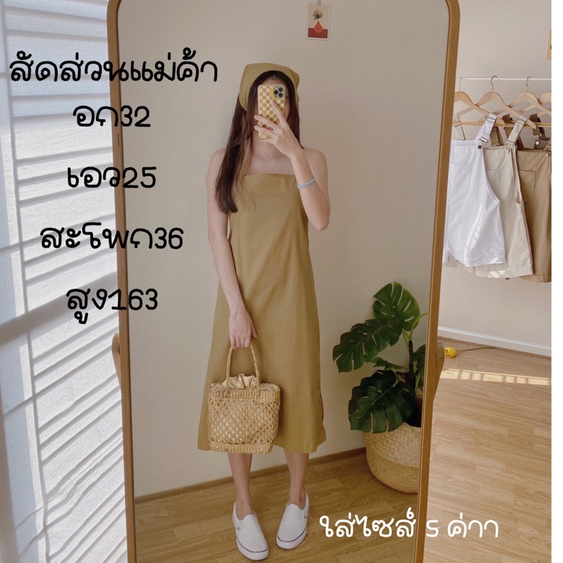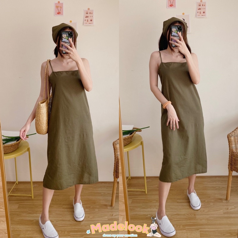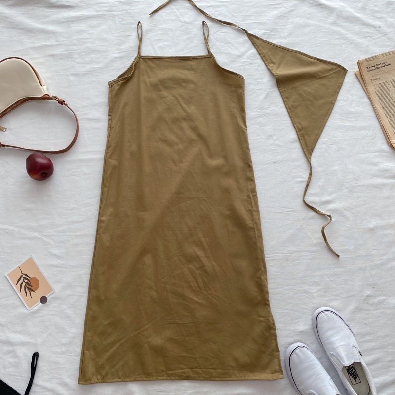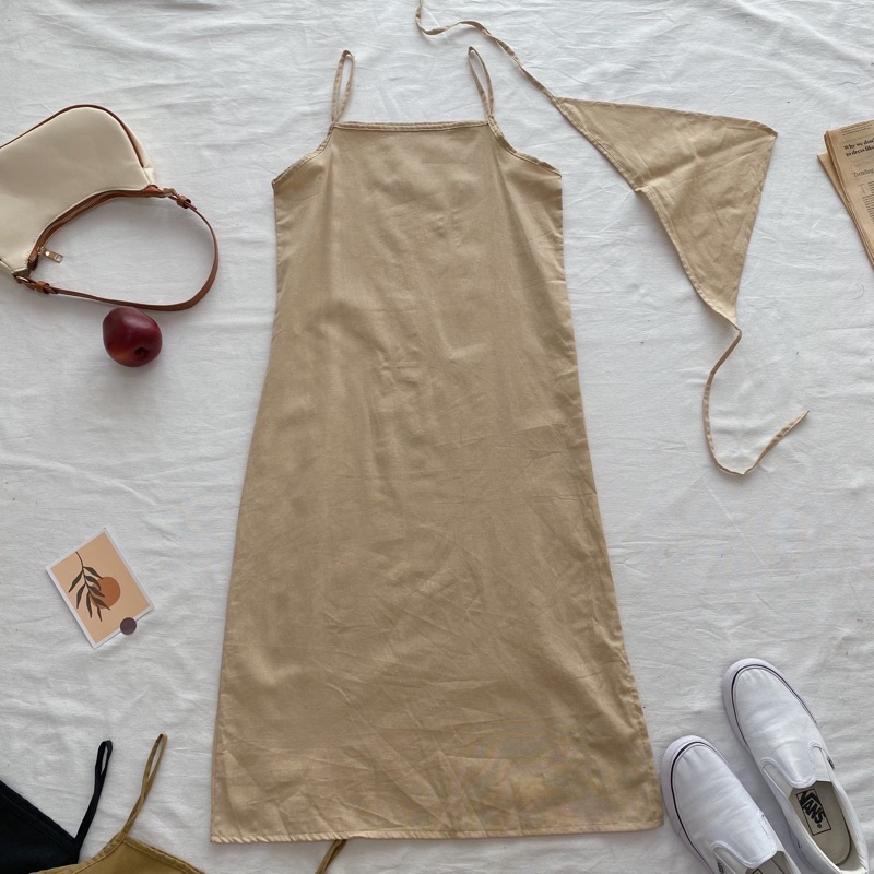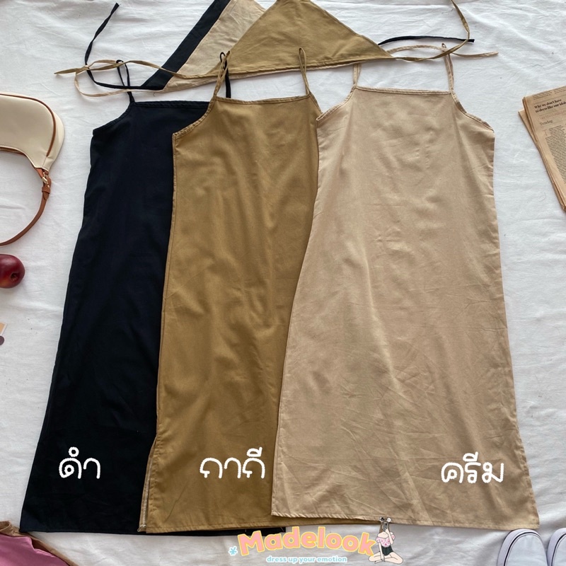 เดรสสายเดี่ยวผ้าฝ้าย สไตล์สาวมินิมอล แถมผ้าโพกผมเข้าเซต1ผืนค่ะ เดรสลินิน เดรสยาว (ครึ่งแข้ง+ผ้าโพก)