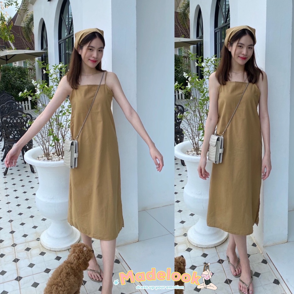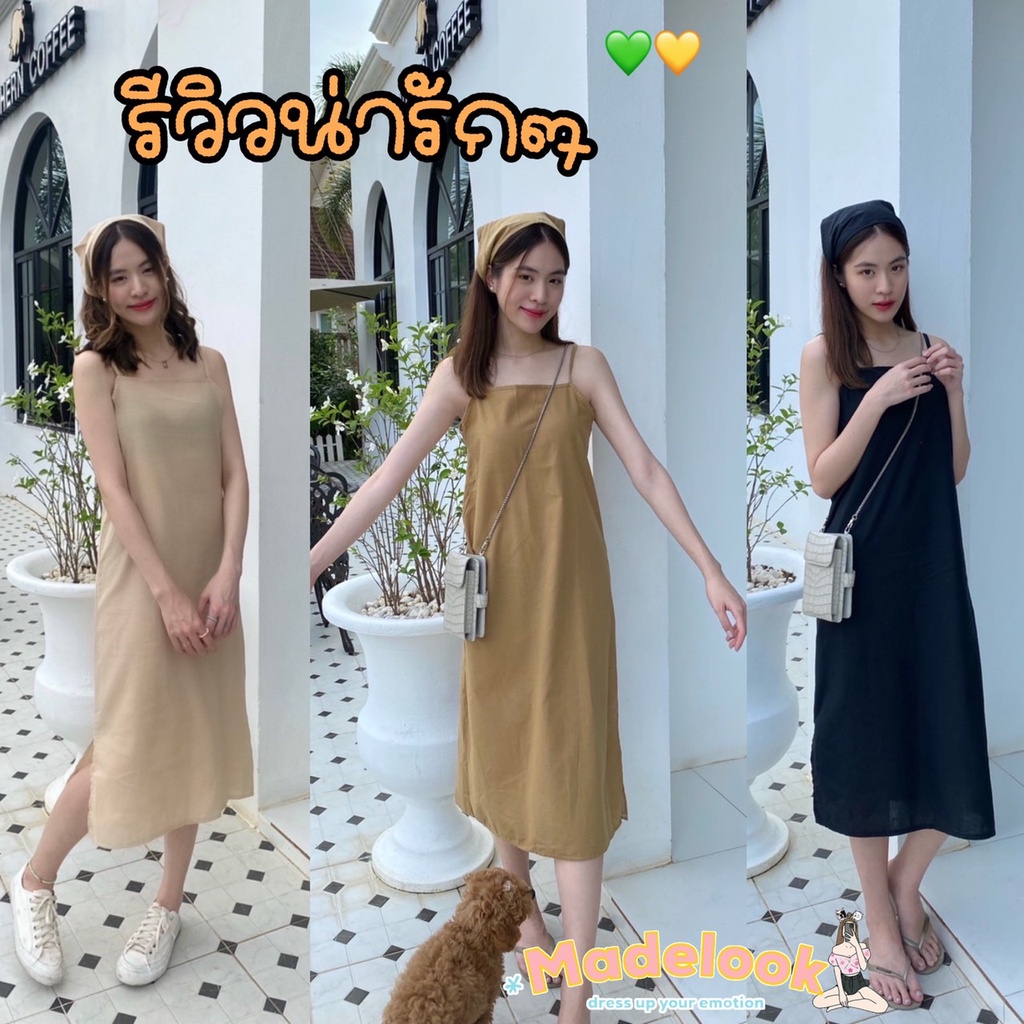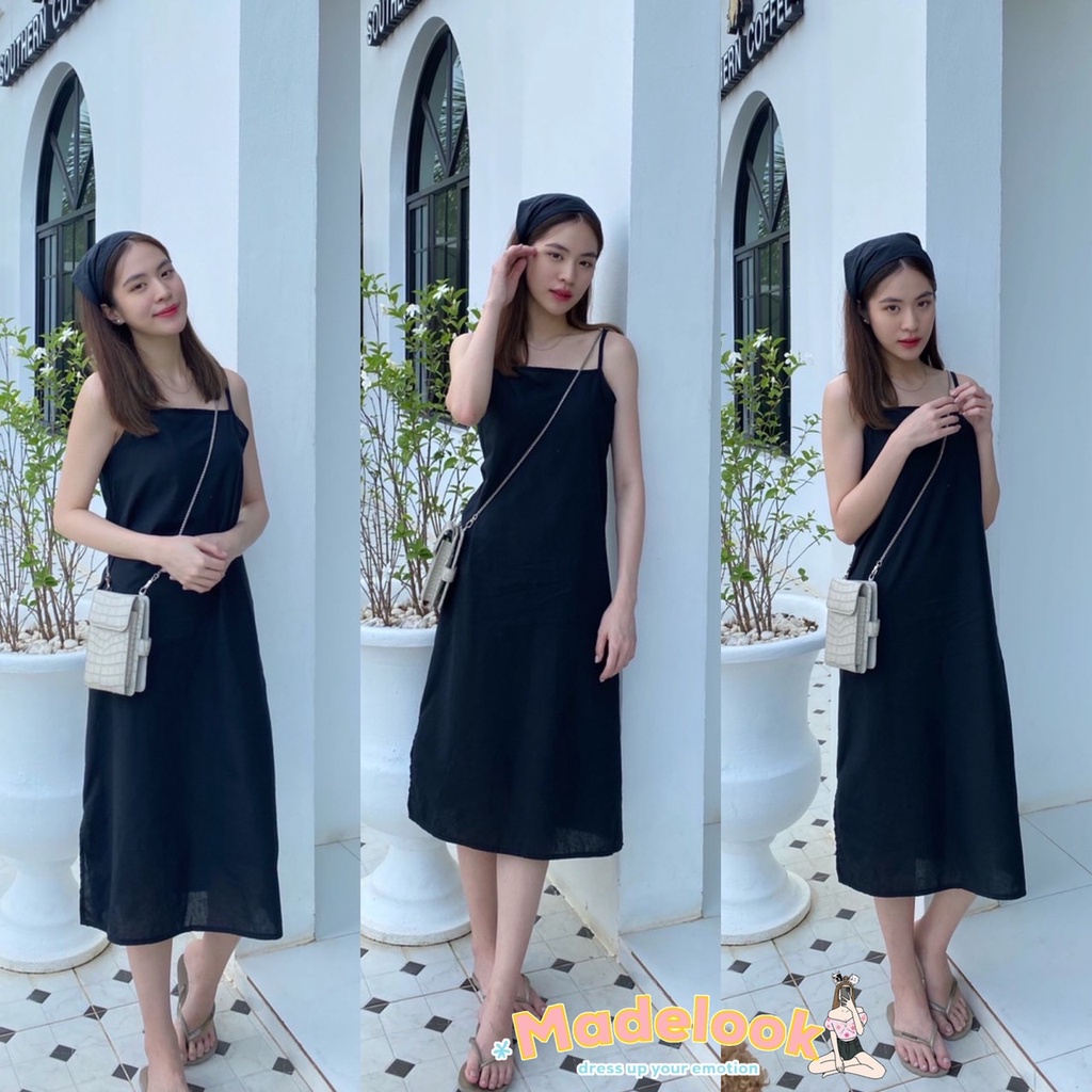 เดรสสายเดี่ยวผ้าฝ้าย สไตล์สาวมินิมอล แถมผ้าโพกผมเข้าเซต1ผืนค่ะ เดรสลินิน เดรสยาว (ครึ่งแข้ง+ผ้าโพก)