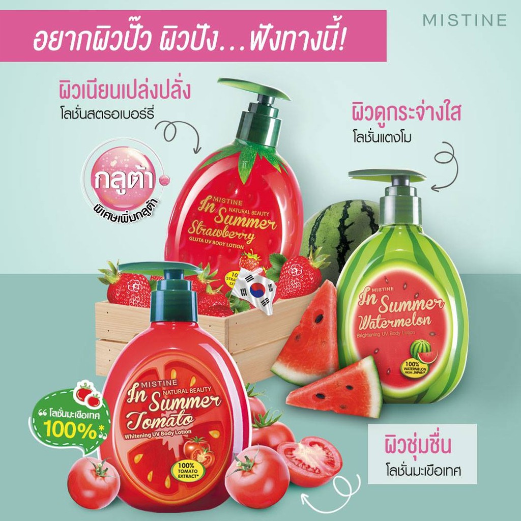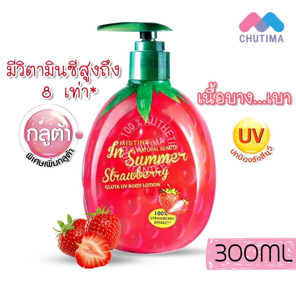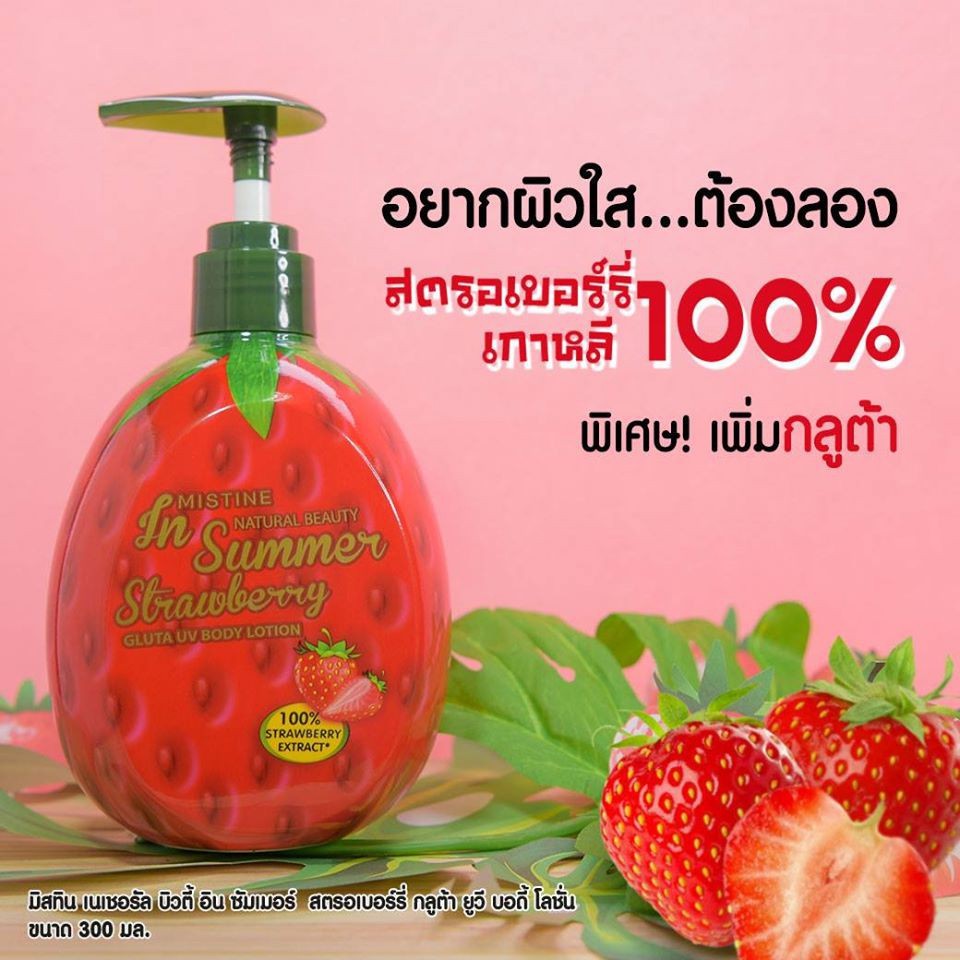 ครีม มิสทิน สตรอเบอร์รี่ กลูต้า ยูวี บอดี้ โลชั่น Mistine Natural Beauty in Summer Strawberry Gluta Body Lotion 300 ml.