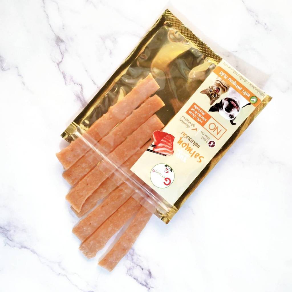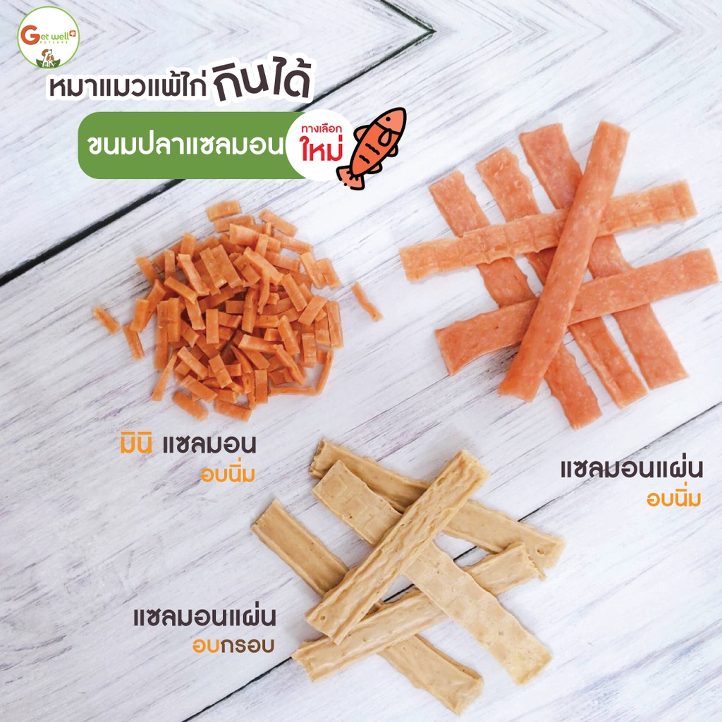 Get Well แซลม อนแผ่น อบนิ่ม ไม่ปรุงรส ขนมสำหรับสุนัขแพ้ไก่ แพ้กลูเตน ขนมแมว ขนมสุนัข ขนมหมา
