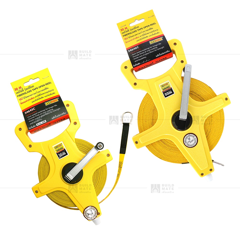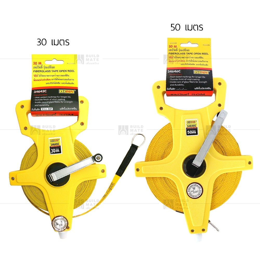 เทปวัดที่ เทปวัดระยะ สายวัดที่ดิน สายวัดระยะ ตลับเมตร รุ่นเปลือย AT INDY ( ขนาด 30 , 50 เมตร ) *แถบวัดทอด้วยไฟเบอร์