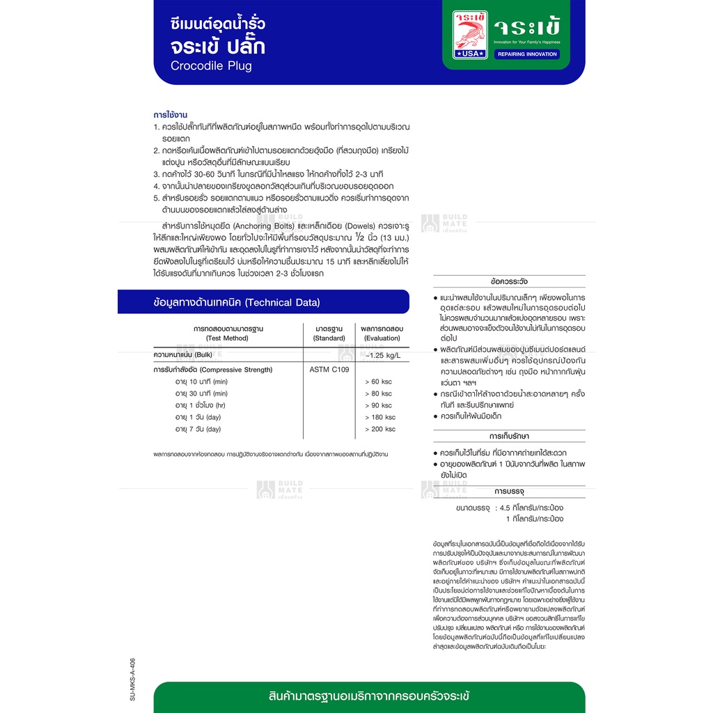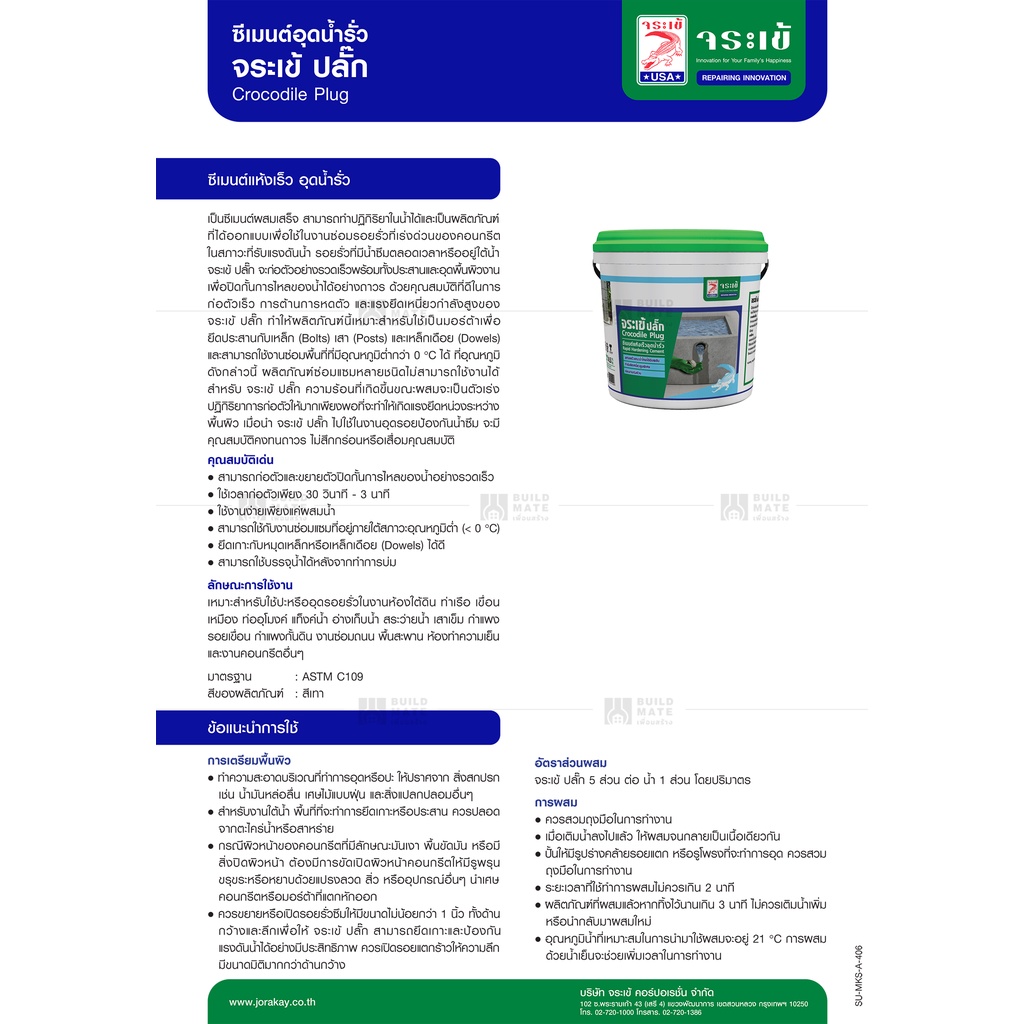 จระเข้ ซีเมนต์แห้งเร็ว อุดน้ำรั่ว ปลั๊กซีเมนต์แห้งเร็วอุดน้ำรั่วขณะไหล ( น้ำหนัก 1 KG. ) *แ ห้งเร็วใน 30 วินาที - 3 นาที*
