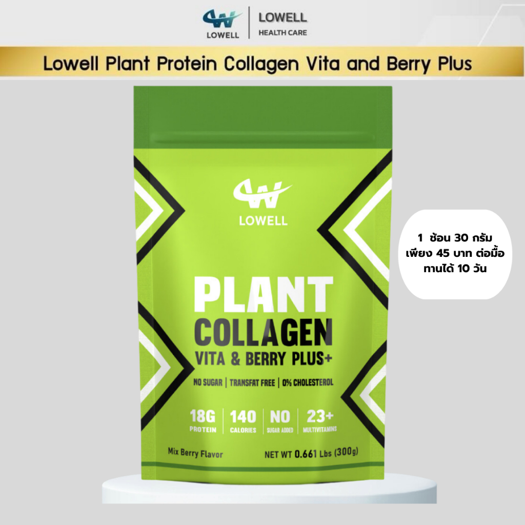 (โปร3เเถม1 ) LOWELL Plant-Based Protein โปรตีนพืช คอลลาเจน+วิตามิน 13 ชนิด รสมิกซ์เบอร์รี่ 300 กรัม