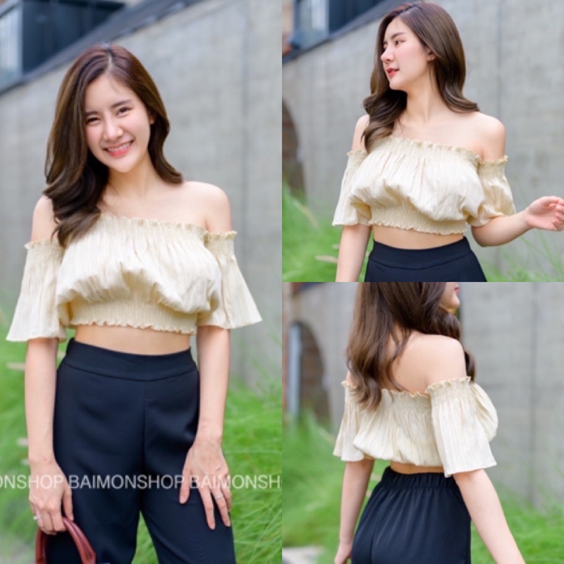 🔥aimorn_shop🔥 เสื้อปาดไหล่ 💗💓ต่อแขนทรงกระดิ่ง 💓💗รุ่นนี้กำลังฮิตมากเลยนะคะ