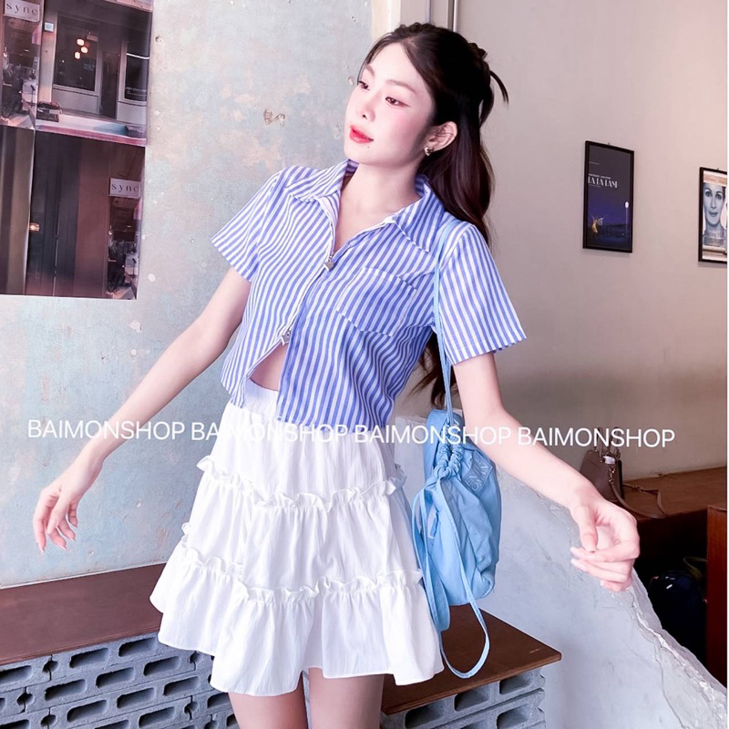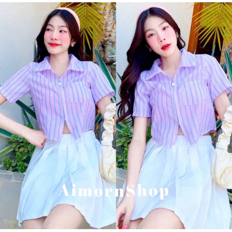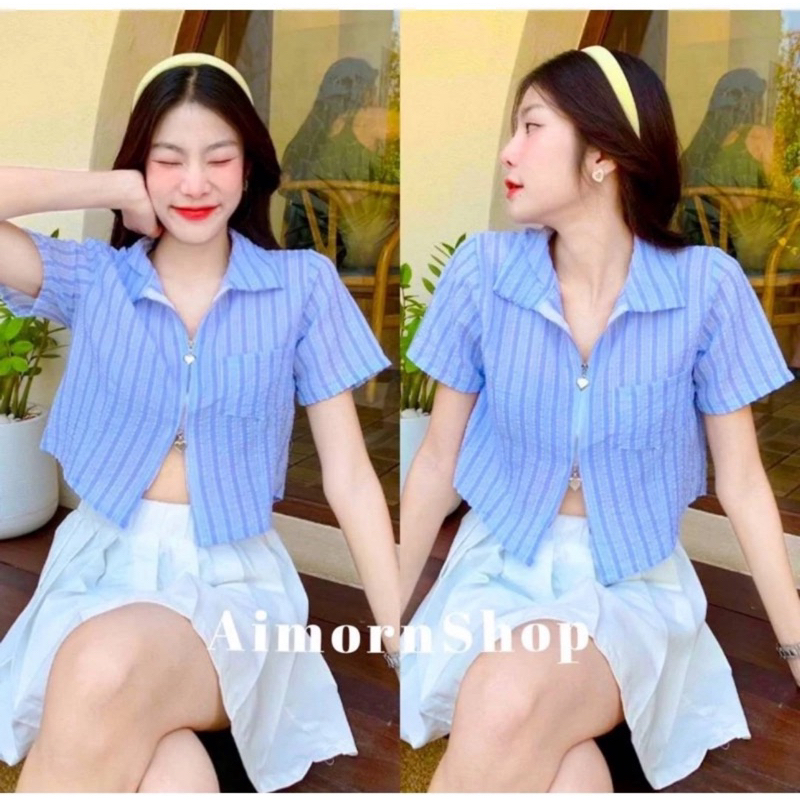 🔥aimorn_shop🔥เสื้อเชิ้ตซิปหน้า รูดได้ 2 ด้าน💙💙💙💙ทรงสวยมี ผ้าใส่สบาย ไม่ยับงานสวยมากๆ