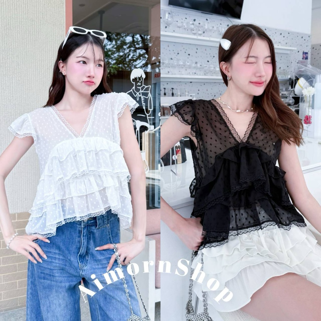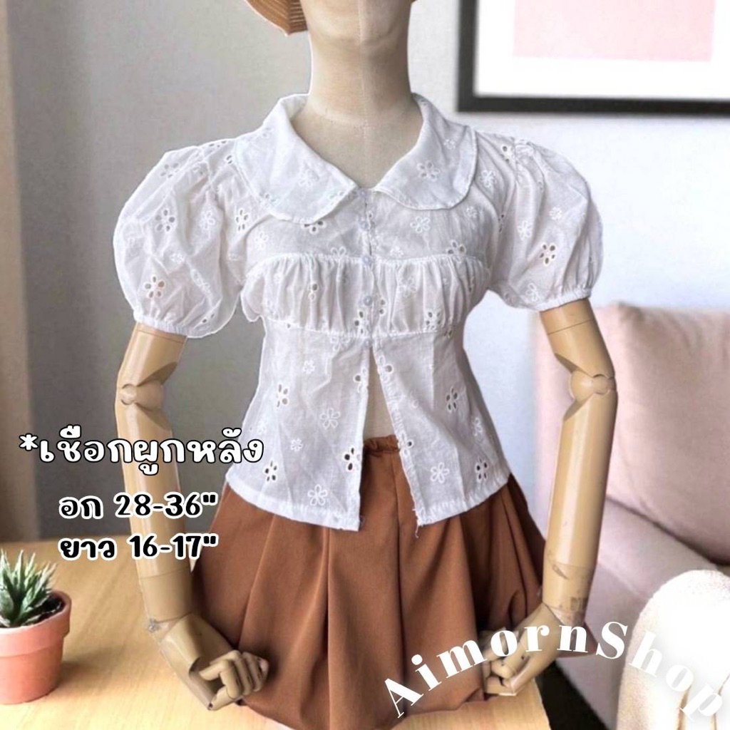 🔥aimorn_shop🔥เสื้อฉลุสีขาว❤️💚❤️รวมmizเสื้อฉลุลายลูกไม้❤️💚❤️ผ้าคอนตอน งานสวยผ้าใส่สบายนะ