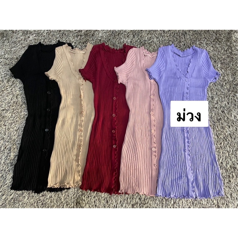 🔥aimorn_shop🔥เดรสไหมพรม 💊🧨ทรงวีหน้าระบาย🧨🩸ผ้าร่องกระดุม ผ้าไหมพรมทรงสวย ใส่สบายมากๆ