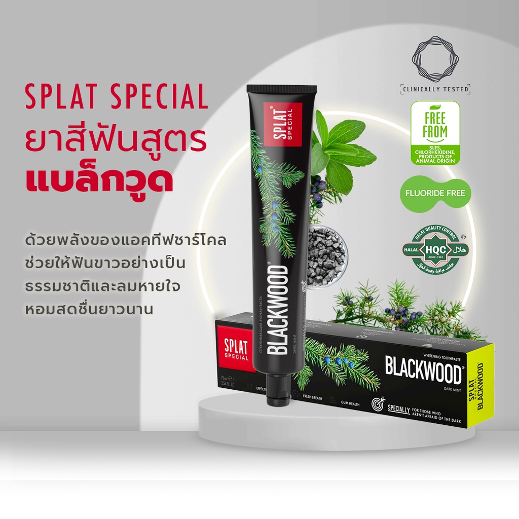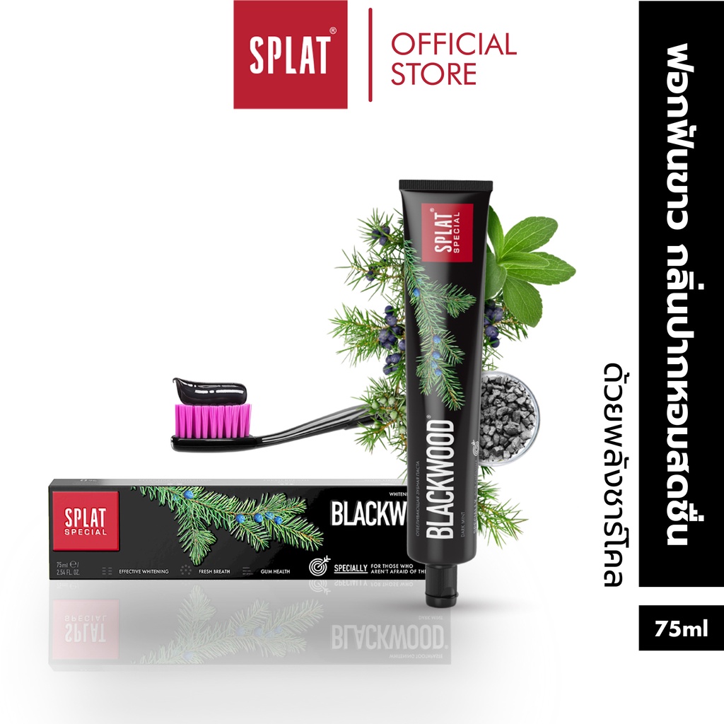 SPLAT Special ยาสีฟัน สูตร "แบล็กวูด" มีสารสกัดจากธรรมชาติและชาร์โคล เพื่อฟันขาวขึ้น ลดกลิ่นปาก (75ml)