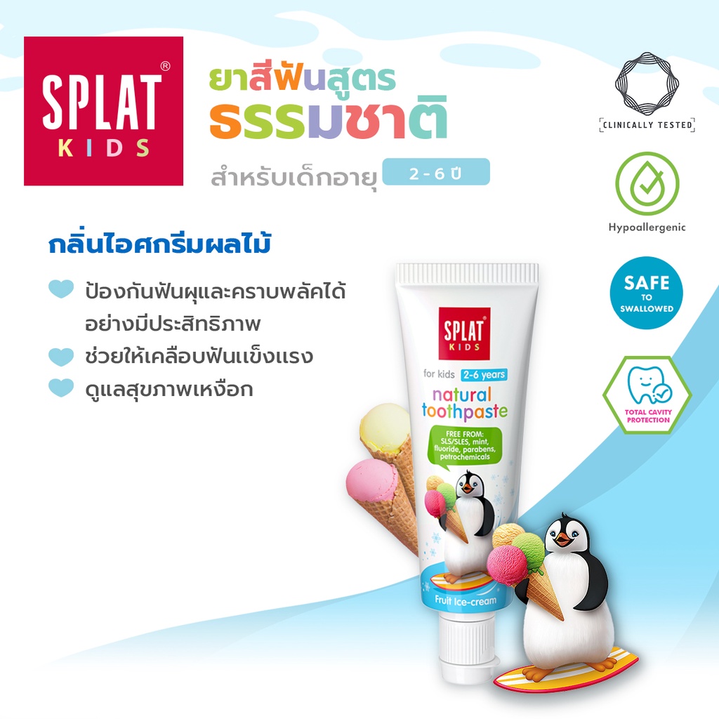 SPLAT Kids ยาสีฟันเด็กอายุ 2-6 ปี กลิ่นไอศกรีมผลไม้ ช่วยป้องกันฟันผุ ไม่มีฟลูออไรด์และมิ้นต์ [20ml]